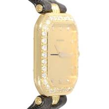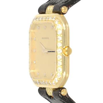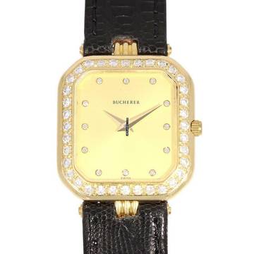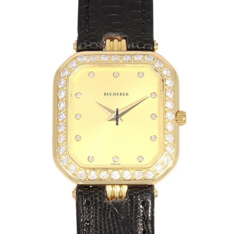 BUCHERER Damenarmbanduhr mit Diamantzifferblatt und Brillantlünette Quarz aus 750 Gelbgold mit Lederband
