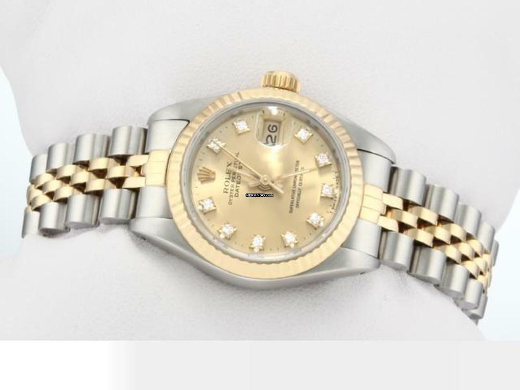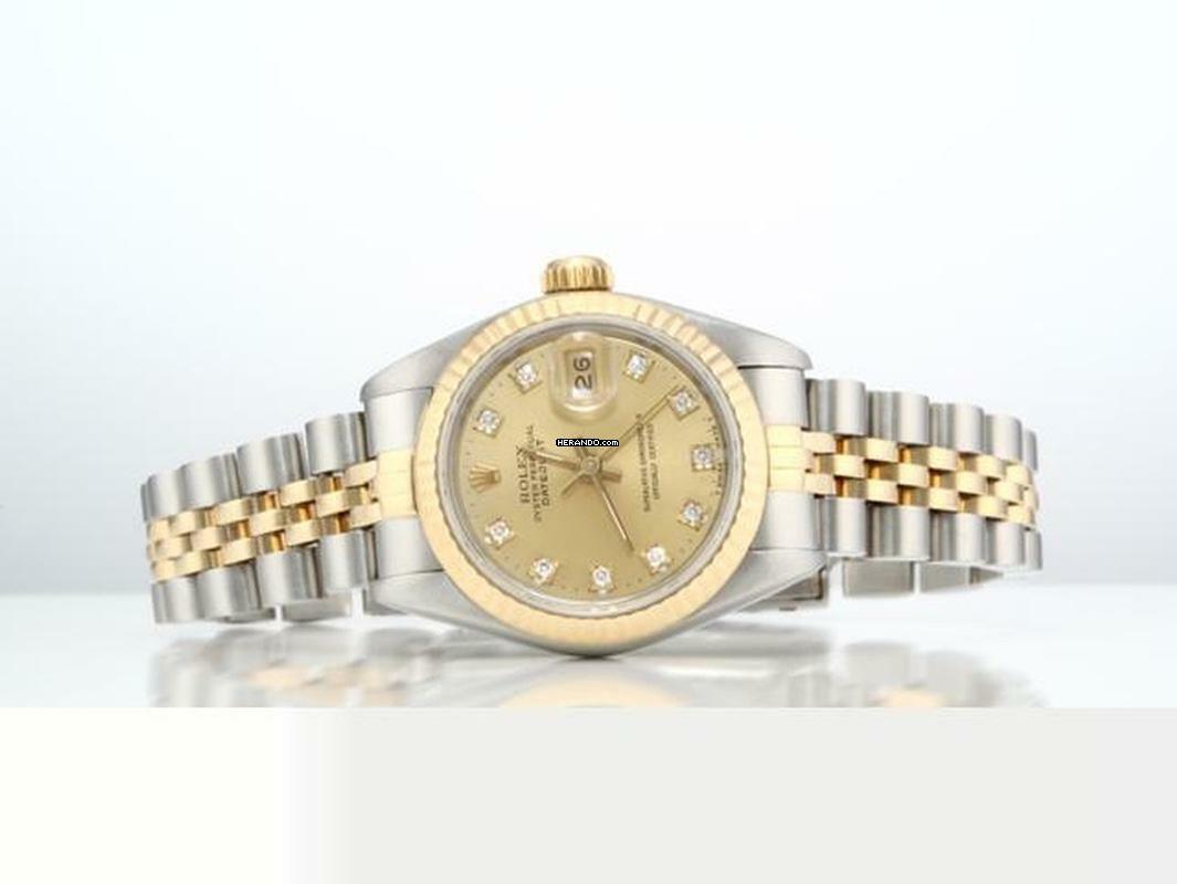 Diese wunderschöne Rolex ist aus Edelstahl in Kombination mit feinstem Gelbgold 750 gefertigtFantastisches und seltenes champagnerfarbenes Zifferblatt mit 10 strahlenden Diamanten besetzt, original von Rolex