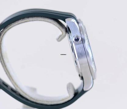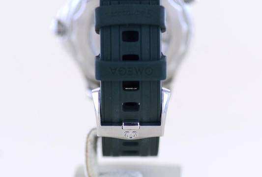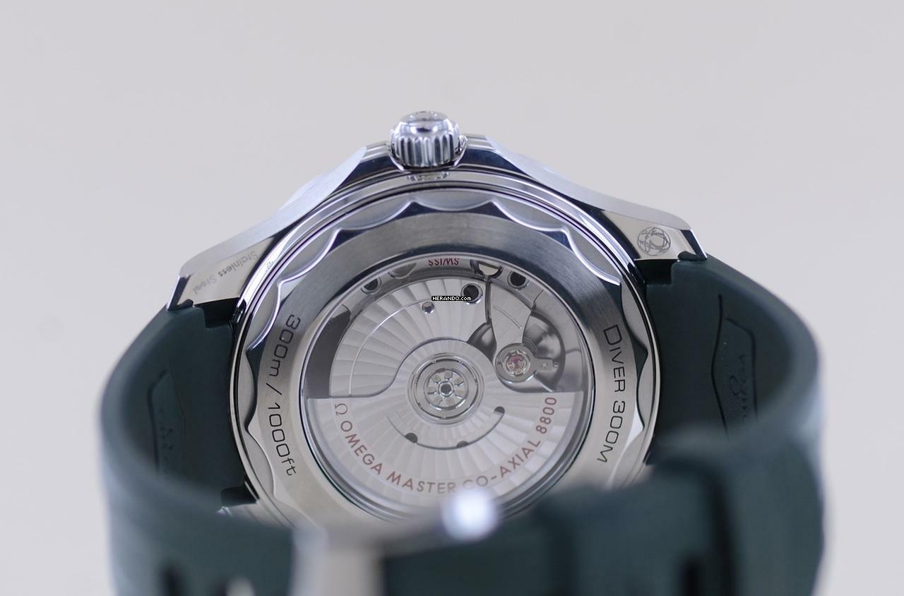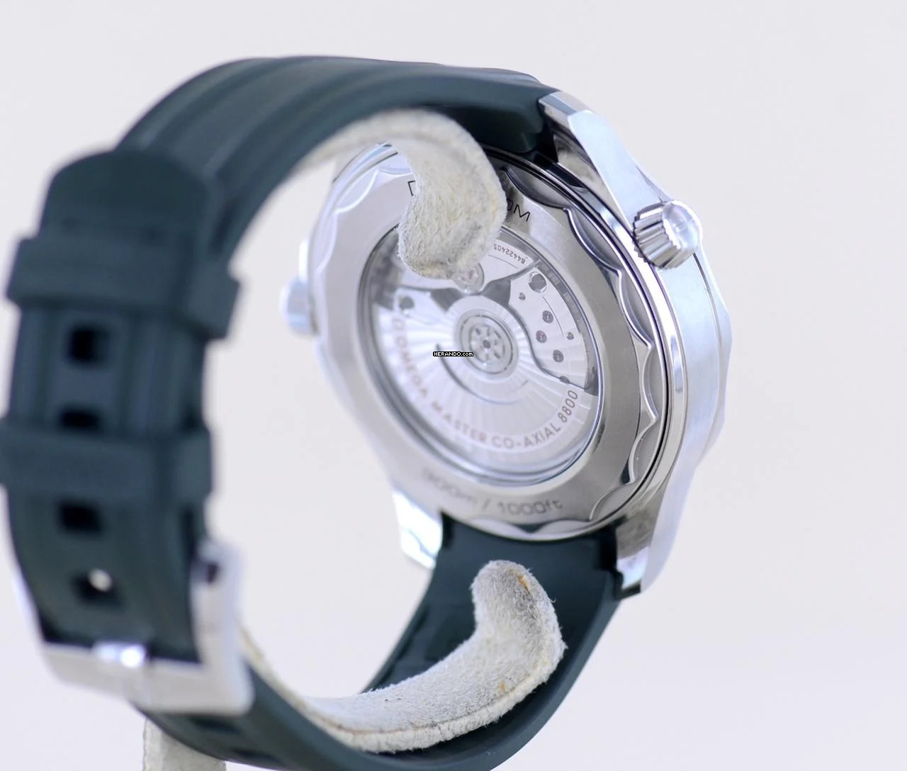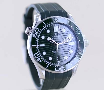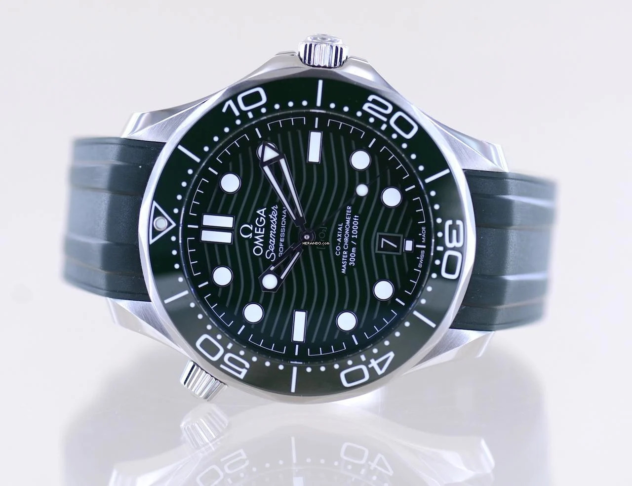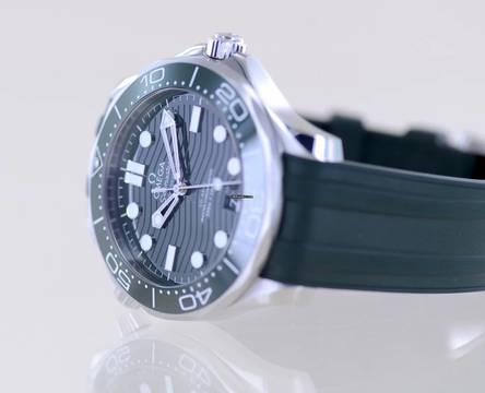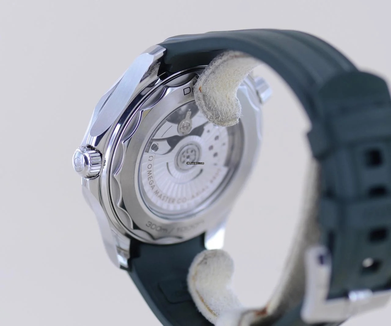 Diese Omega fällt durch ihre grünen Elemente sofort auf, welches einen wunderbaren Glanz haben. Nacht fast schwarz und in der Sonne ein sattes Grün. Absolut geniales Wellen-Finish und schöner als ein Meer in der Sonne. Die Formsprache der Uhr vermittelt maritimes professionelles Flair. Und klar - zum Tauchen und jegliche Art von Wassersport ist dieser Zeitmesser wie gemacht, denn bis zu 300 Meter tief hält sie dem Wasserdruck stand.