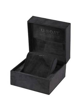 Edelstahl AISI 316L, komplett gefüllt mit einem speziellen Öl, welches das Zifferblatt umhüllt und die Illusion der Abwesenheit von Glas erzeugt, sowie einen optischen Effekt einer höheren Ablesbarkeit. Sichtbare Luftblase auf dem Zifferblatt, um die Temperaturschwankungen auszugleichen. Charakteristische Krone auf der linken Seite. Durchmesser 44 mm.