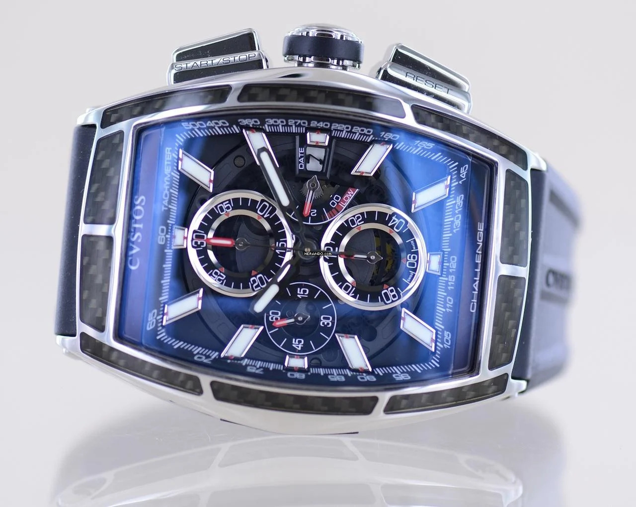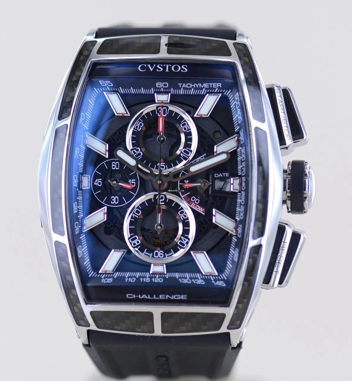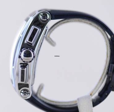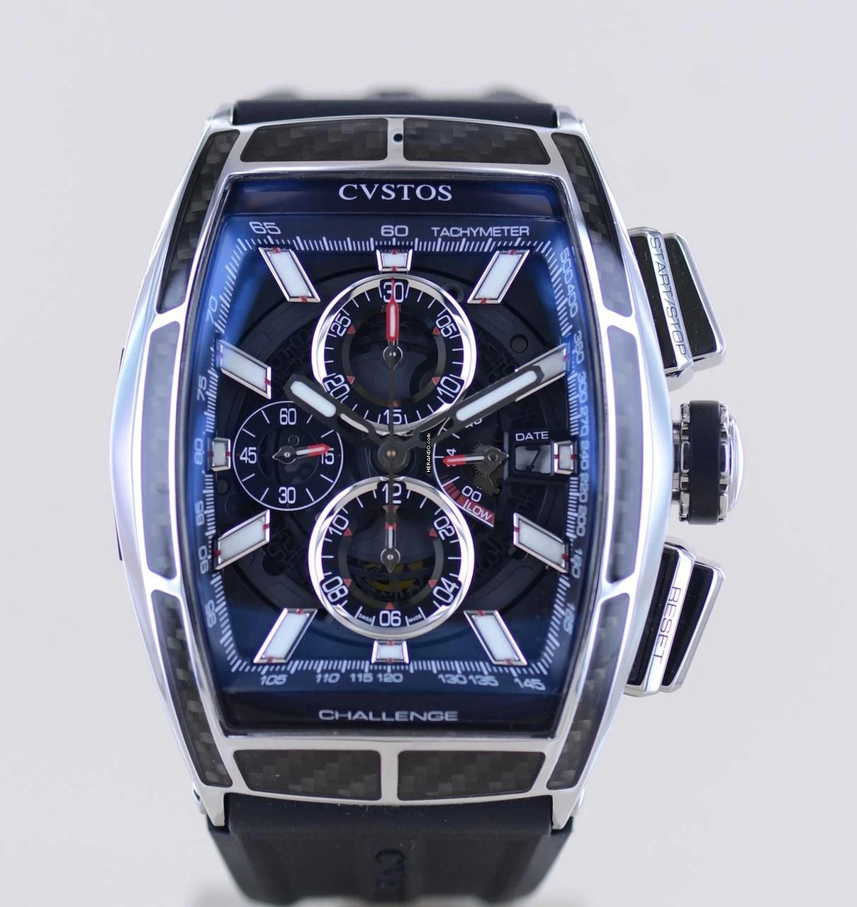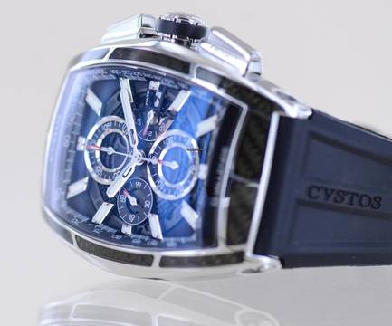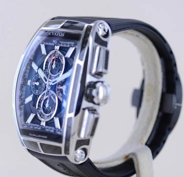 Coole und außergewöhnliche CVSTOS Chrono II GT in der polierten Titan-Carbon Edition. Diese Ausführung wurde in limitierter Auflage von 100 Exemplaren aufgelegt.Dieser schöne Zeitmesser überzeugt durch markant harmonische Rundungen und eine geniale Verarbeitung. Das geschwungene Gehäuse erinnert ein wenig an die Cintrée Curvex Form von Franck Muller, was sicher auf die Genetik der Marke zurückzuführen ist. Hier allerdings wesentlich markanter, technischer und sportlicher. Das skeletierte Blatt fällt durch seine weißen Elemente auf und wird elegant von poliertem Titan und Carbon gerahmt. Eine coole Kombination aus High-Tech-Materialien.