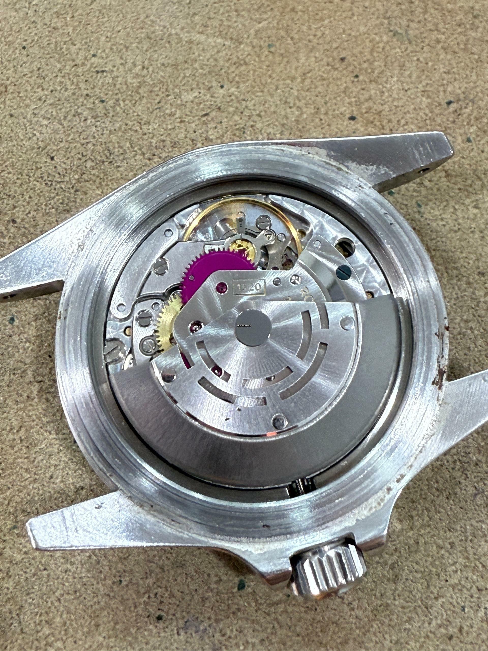 - Original black glossy dial with white gold surrounds and beautiful warm patina with matching hands with original untouched tritium markers and hands.