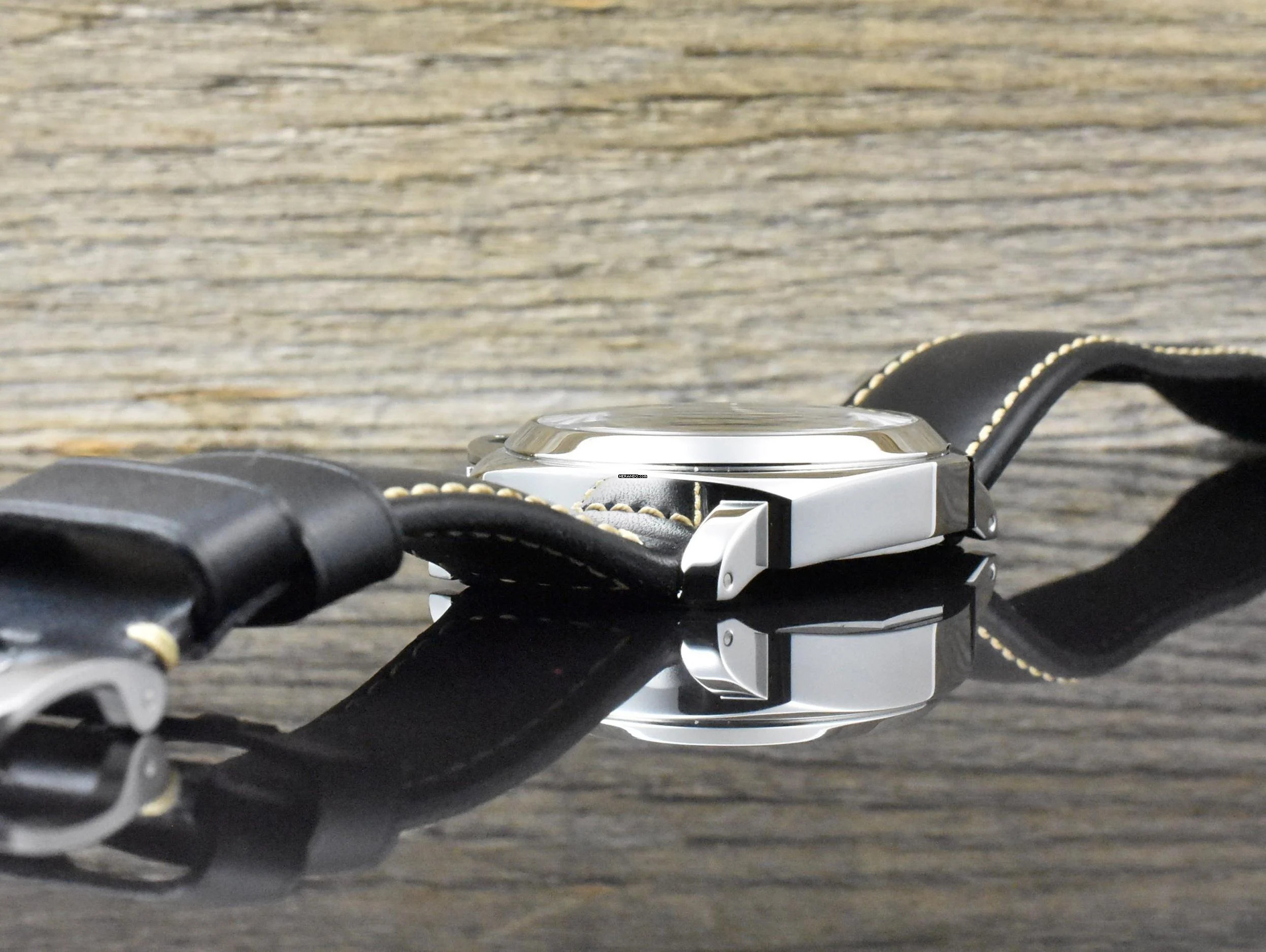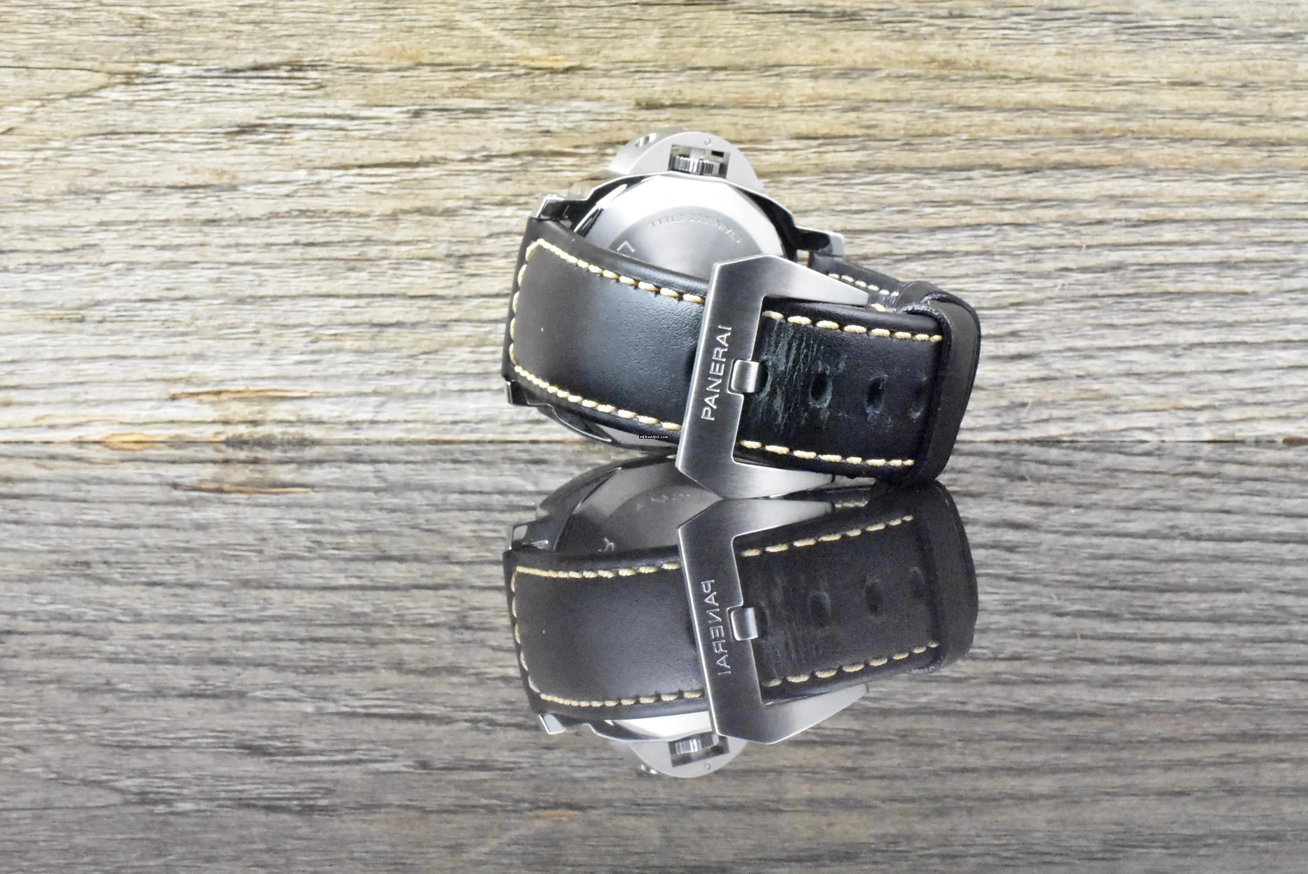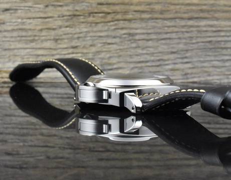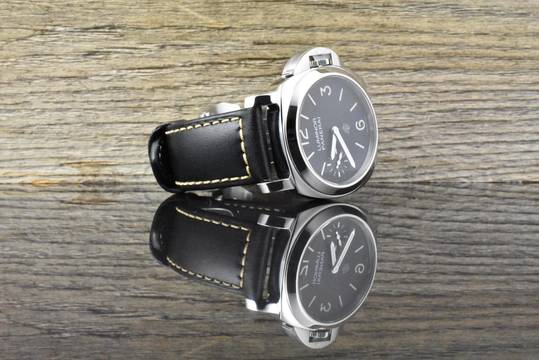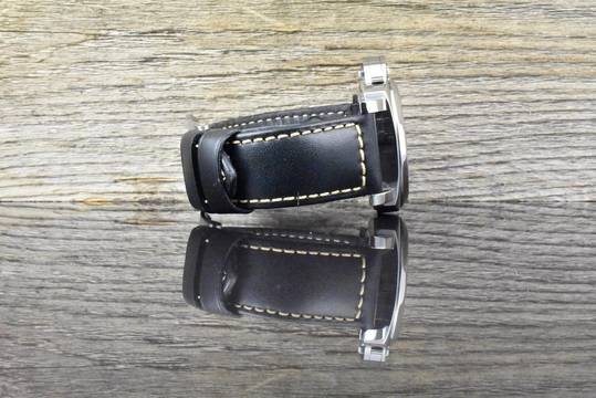Armband: schwarzes Panerai Kautschuk + Leder Armband & Stahl Dornschließe