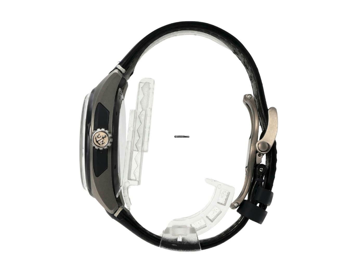 Gehäuse aus Titan satiniert, Gehäusedurchmesser 43 mm, blaues Lederarmband mit Faltschließe, blaues Zifferblatt, Automatikwerk, Kaliber UN-230, 21.600 A/h, Gangreserve ca. 72 Stunden, Saphirglas, Krone verschraubt, Saphirglasboden, wasserdicht bis zu 5 bar.