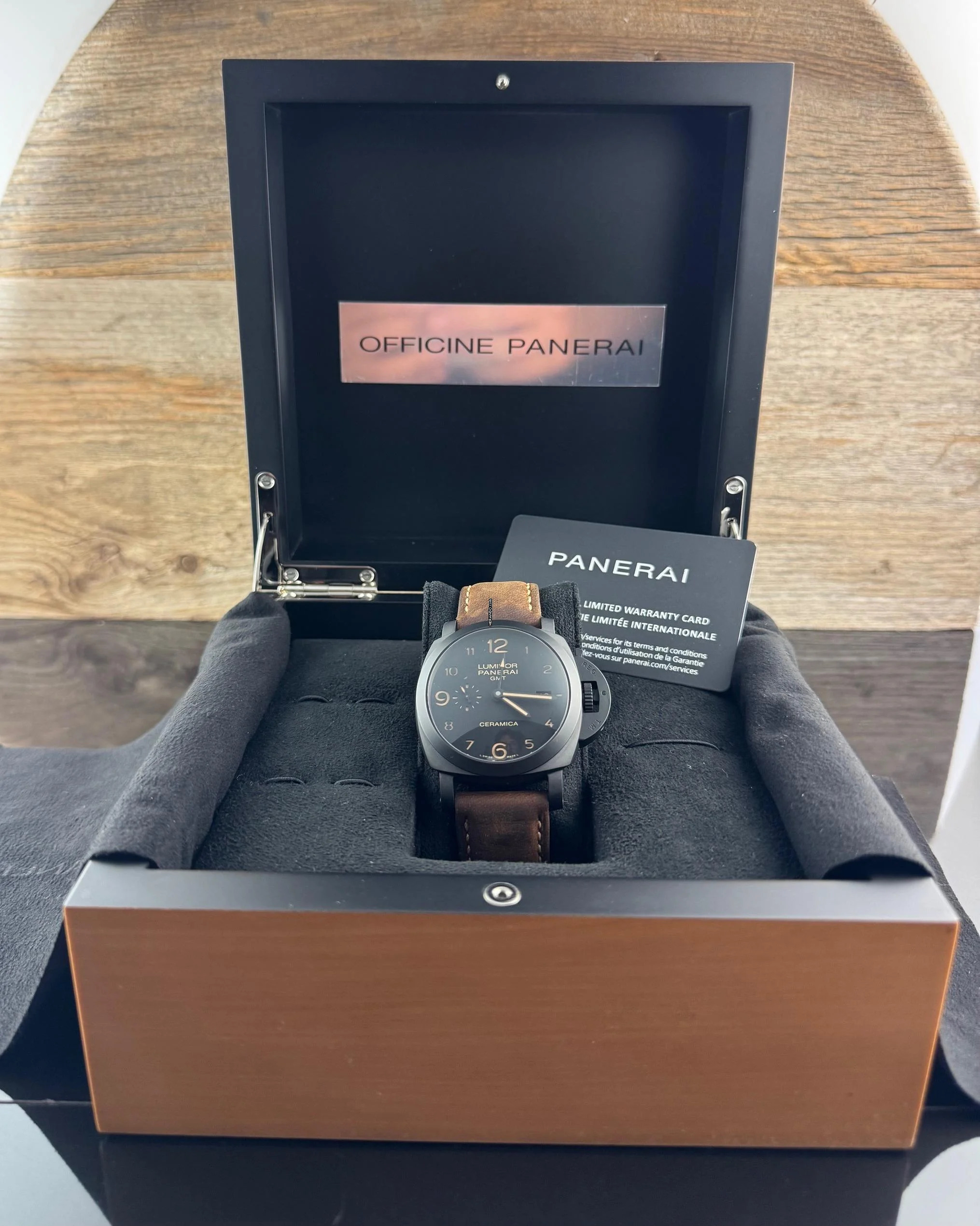 An alle Freunde des guten Geschmacks, angeboten wird eine sehr schöne Panerai Luminor 1950 3 Days GMT Ceramica Reverenz PAM00441 aus dem Jahr 2018 mit Box + Zertifikat!