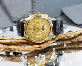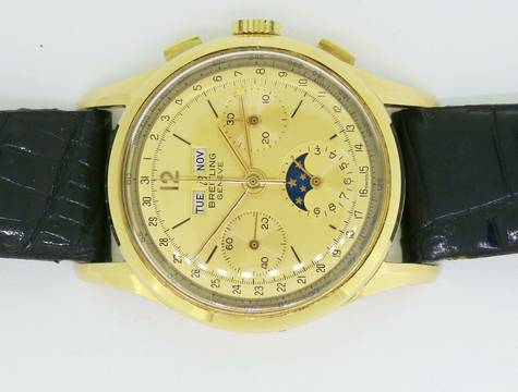 Sehr schöne Breitling/Wakmann, Triple Calendar Moonphase 18Karat Gold