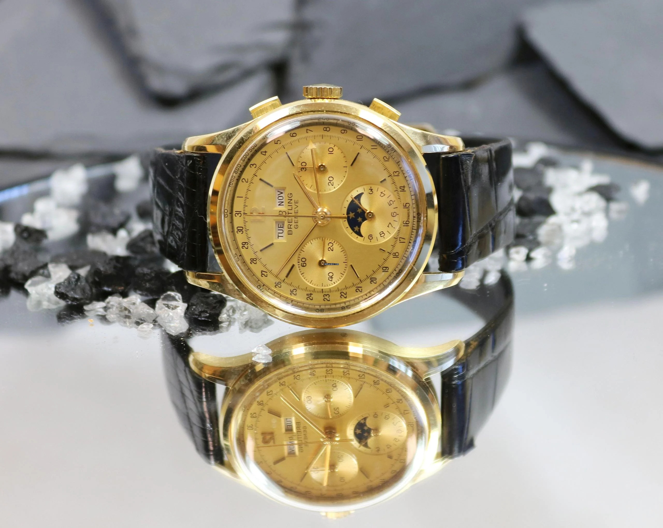 Breitling Triple calendar moonphase 18Karat Gold Rare vintage watch