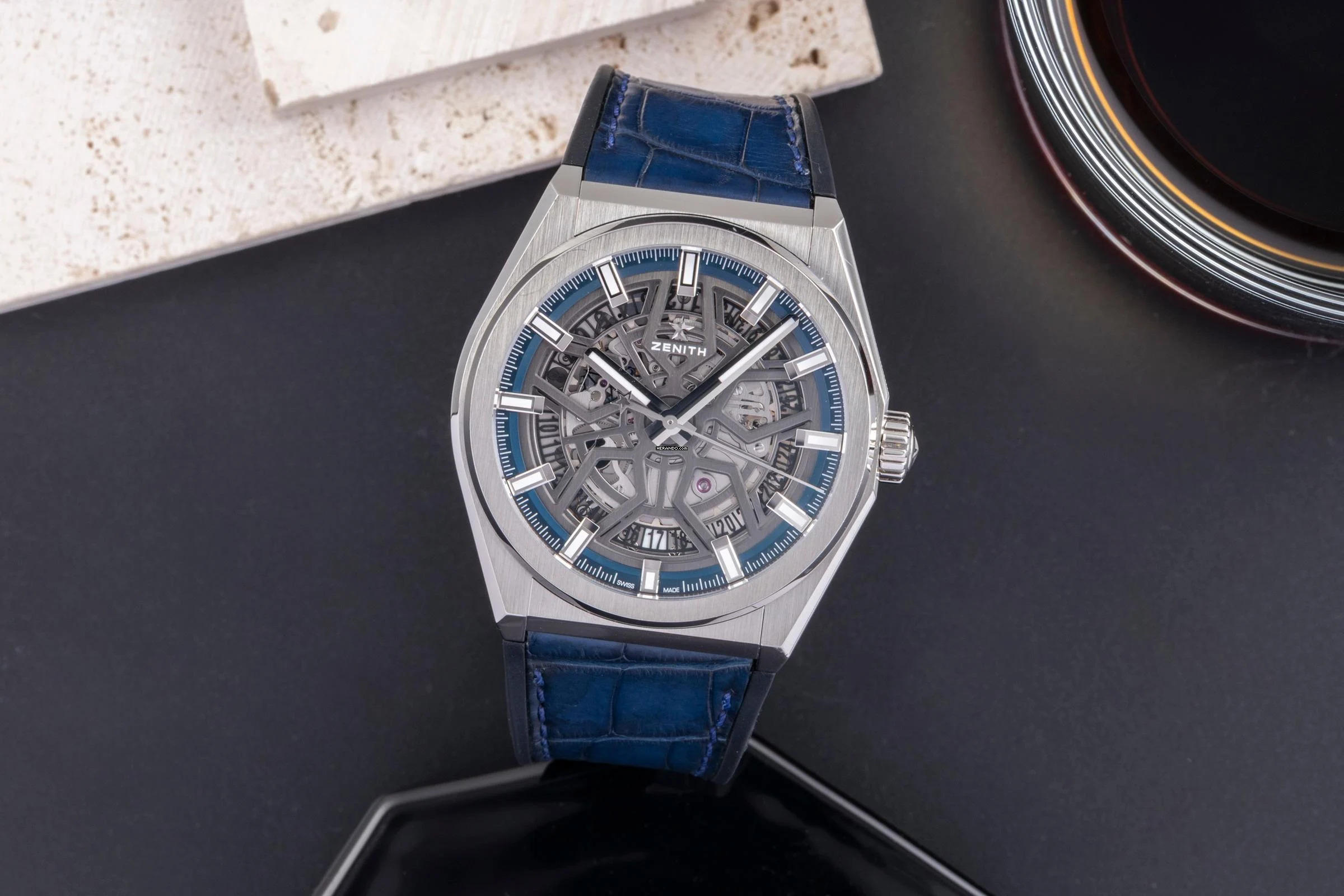 - dunkelblaues Original Zenith Lederarmband