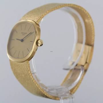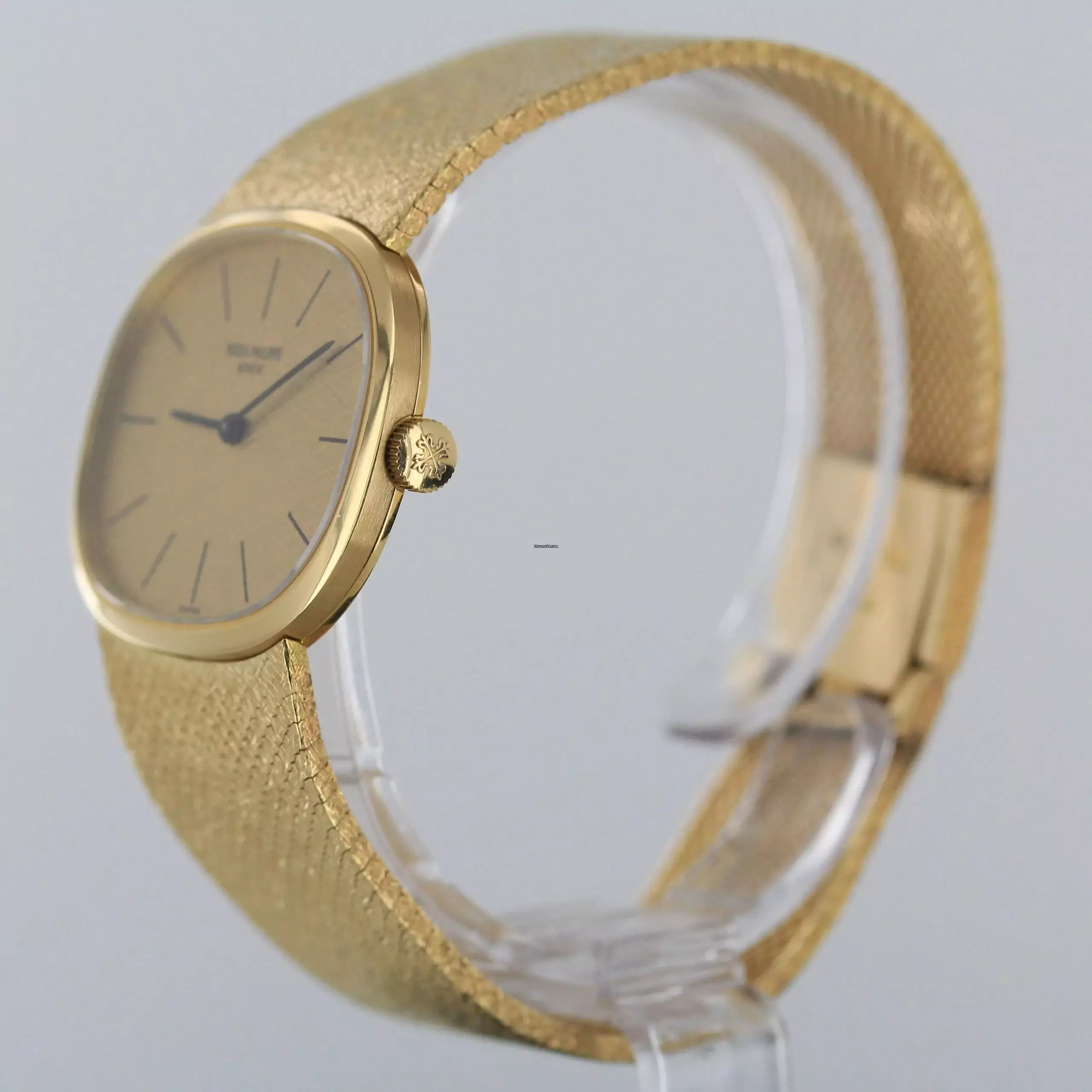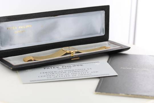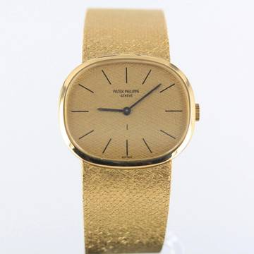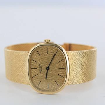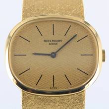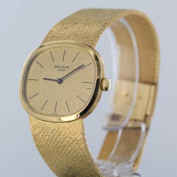 Wir bieten Ihnen hier eine selten elegante Patek Philippe Ellipse d´Or mit goldenen Leinenzifferblatt an.