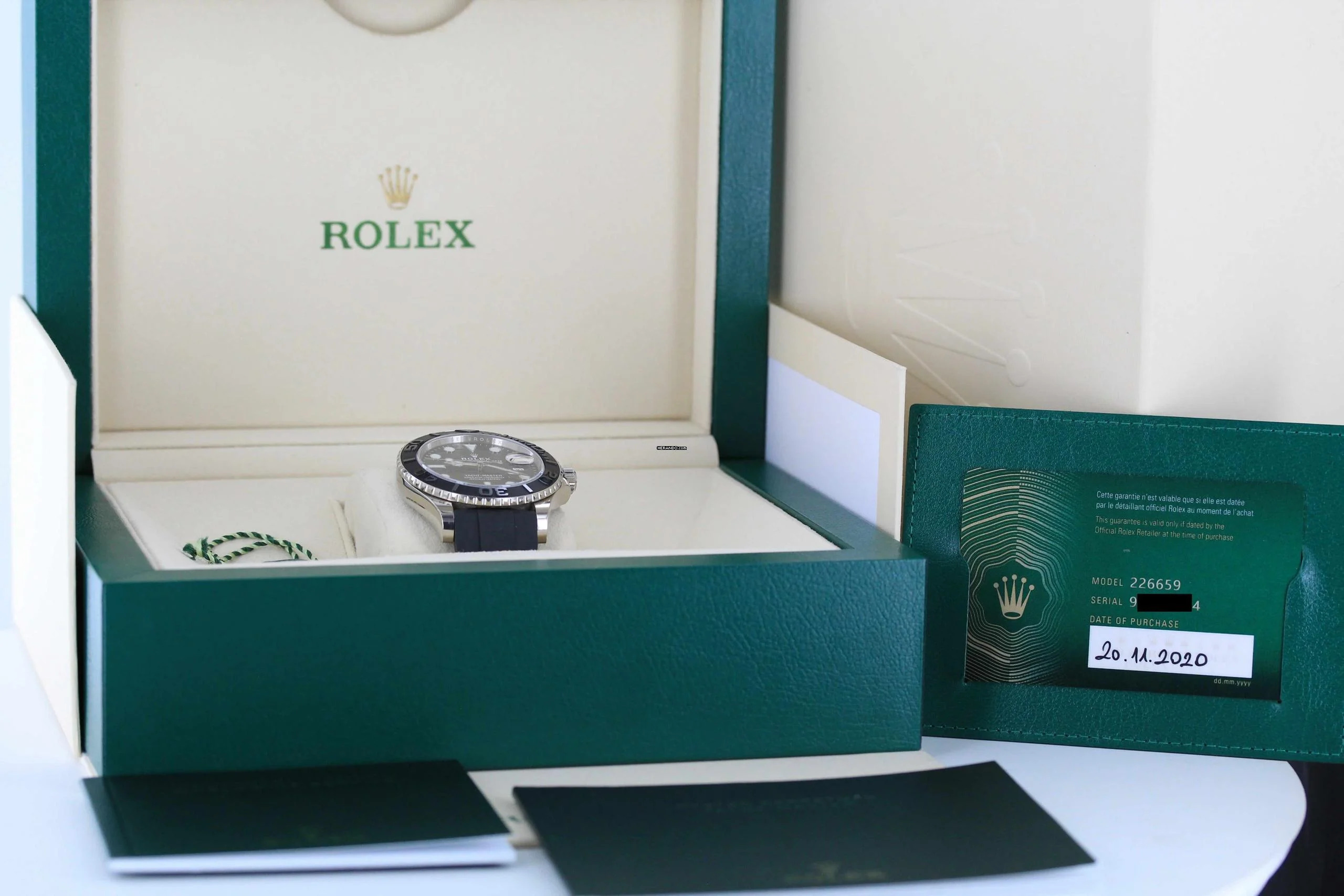 Wir bieten Ihnen hier eine elegante Rolex Yacht-Master 42 im Full Set an.
