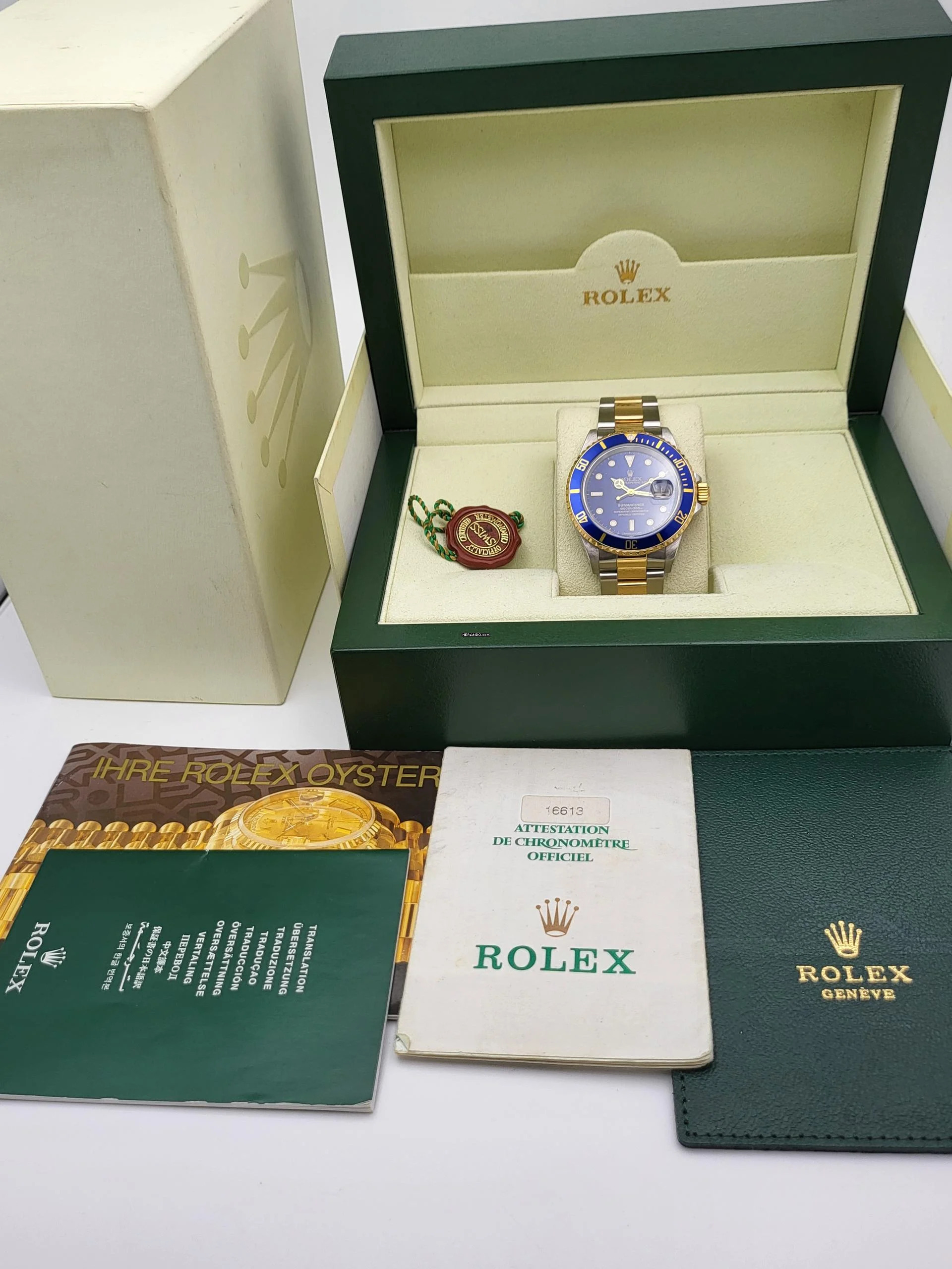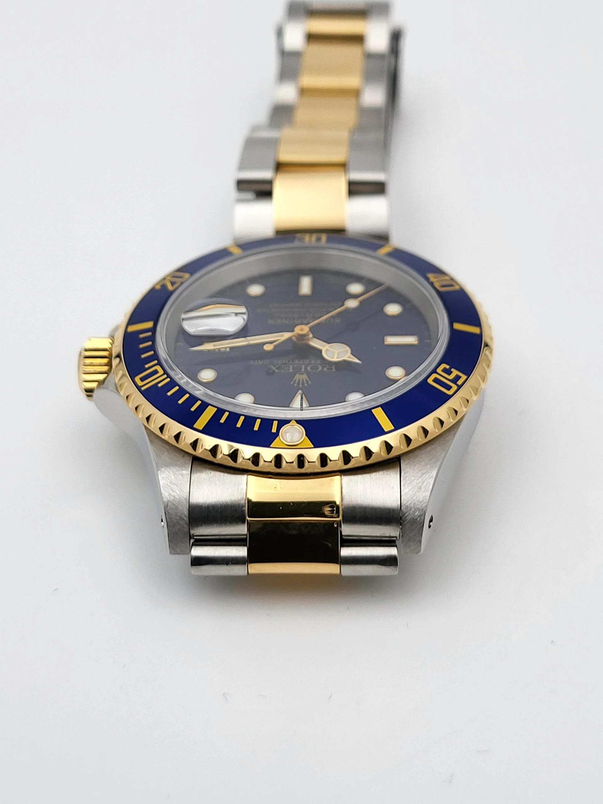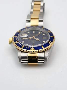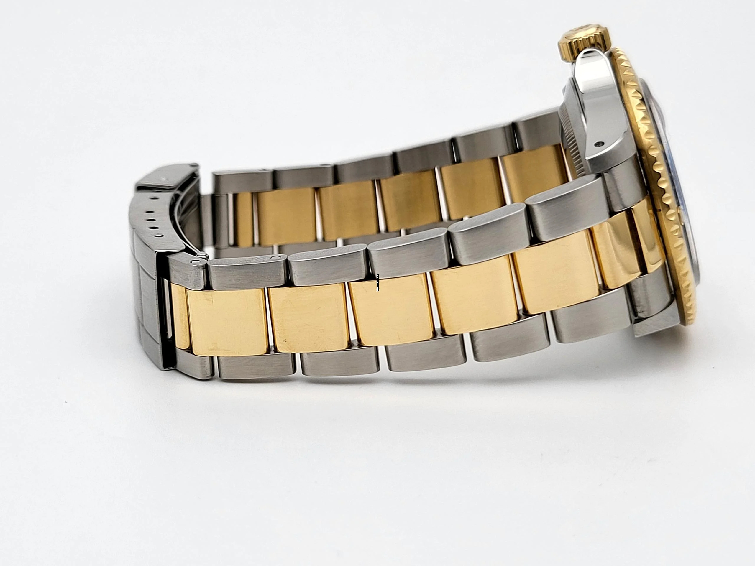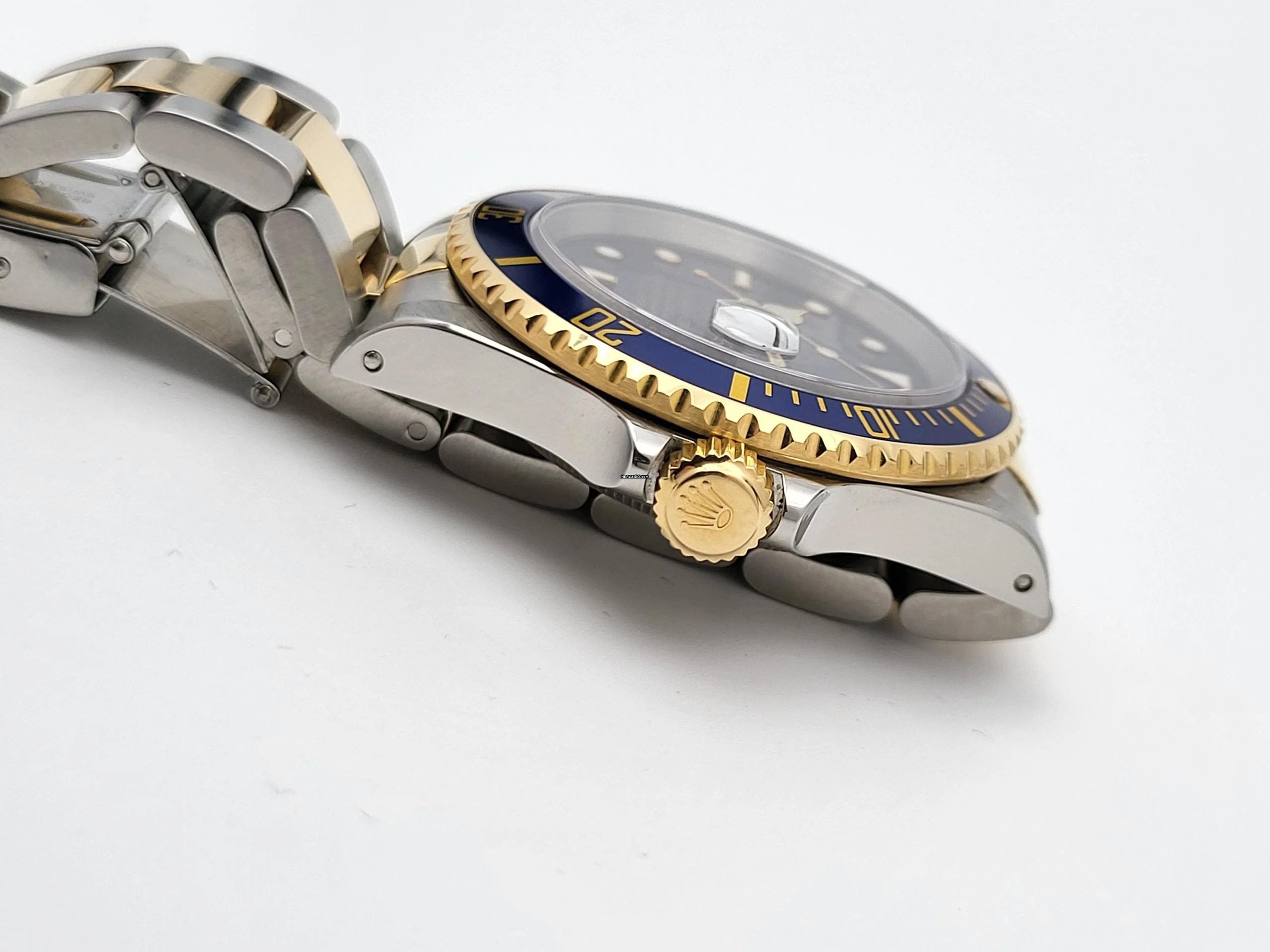 For sale is this nice Rolex Submariner 40 mm. Steelgold with blue dial, gold bezel and Oyster-Bracelet.