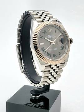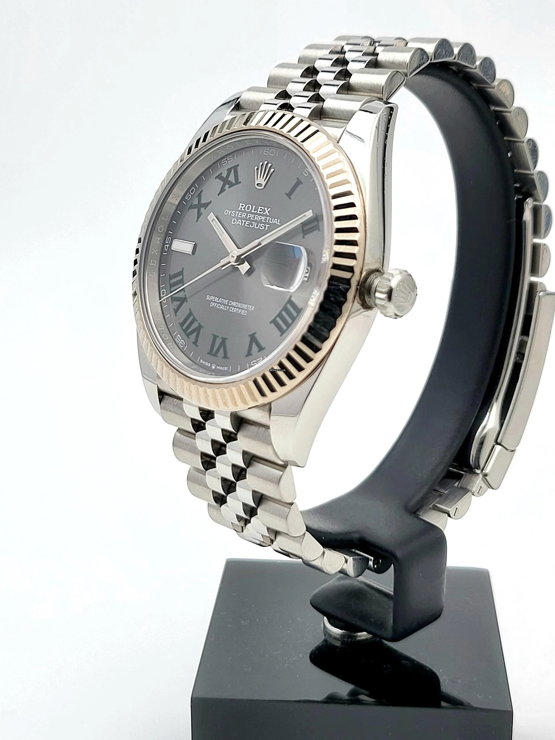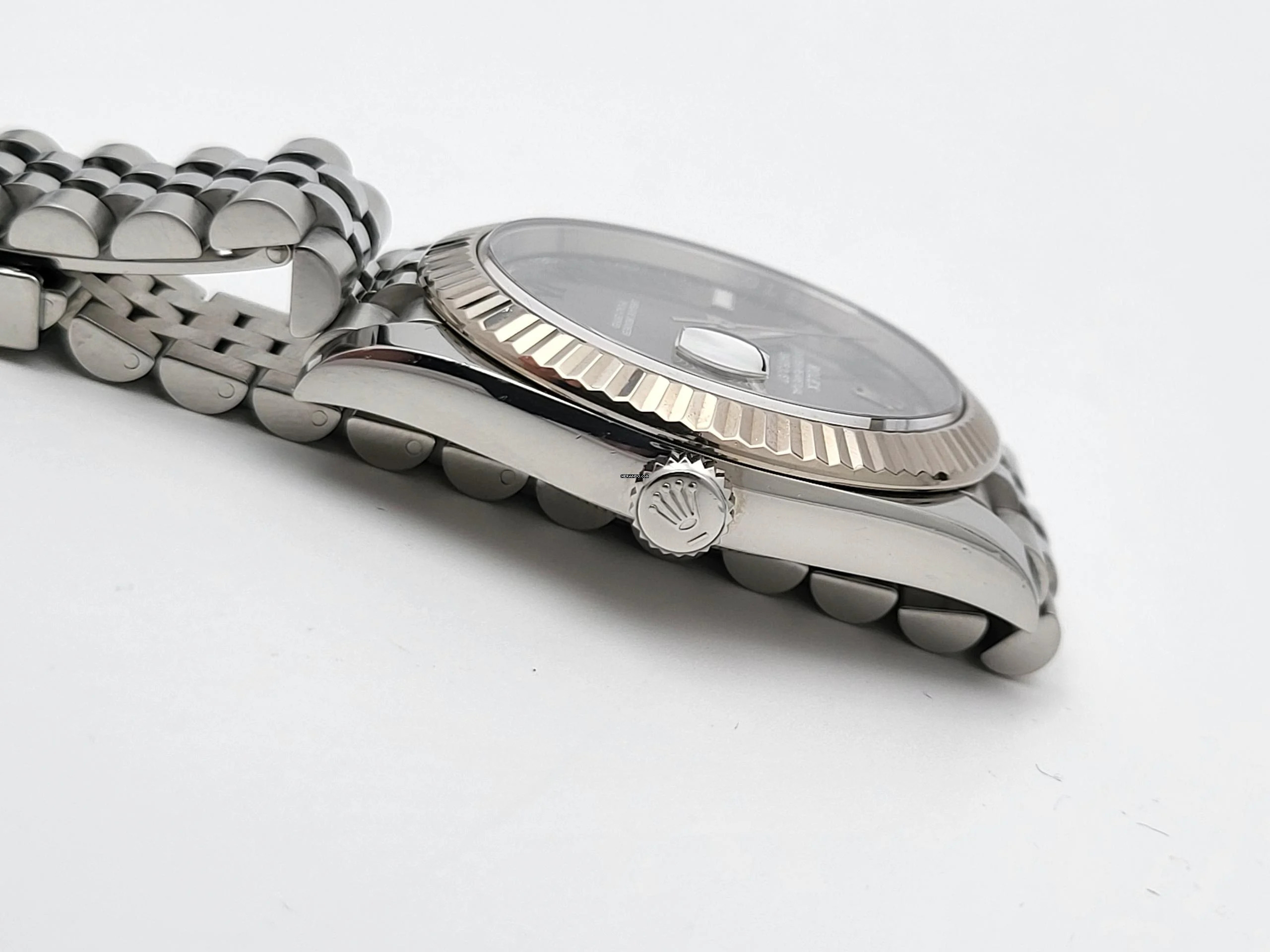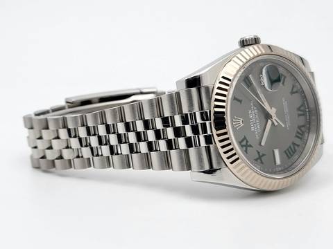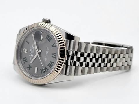 Zum Verkauf steht diese schöne Rolex Datejust Wimbledon 41 mm in Stahl mit grauem Zifferblatt, Weissgoldlünette und Jubilee-Band.Die Uhr befindet sich in einem optisch und technisch guten bis sehr guten Zustand mit kleineren Gebrauchsspuren, dies sollte auf den Zoom -Bildern erkennbar sein!