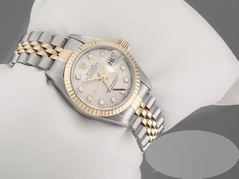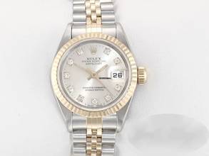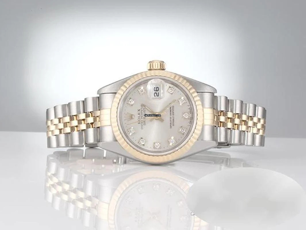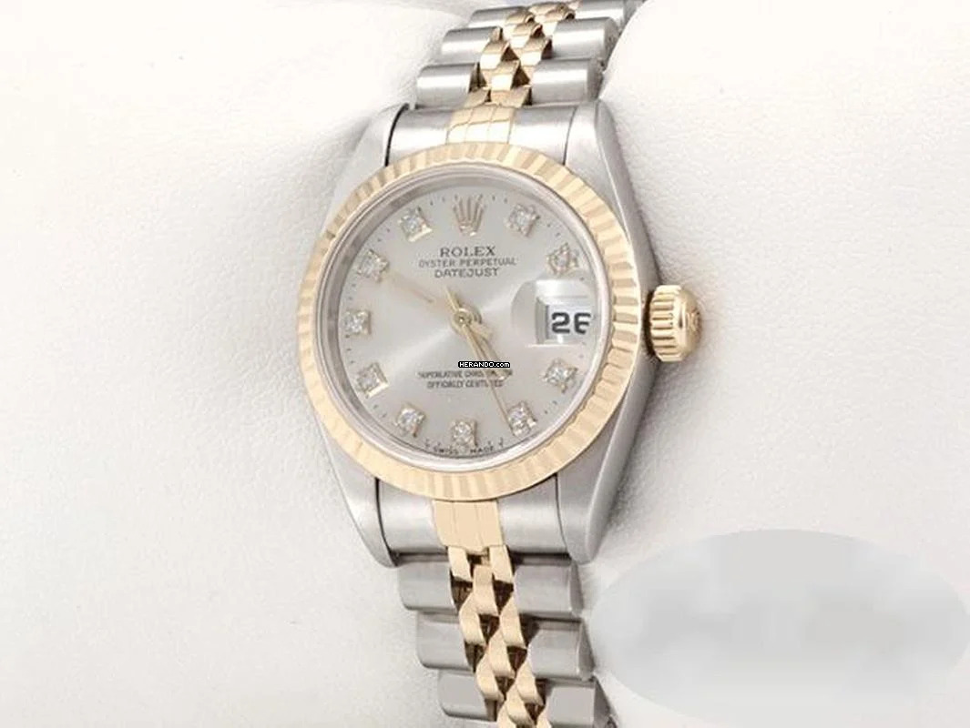 Diese wunderschöne Rolex ist aus Edelstahl in Kombination mit feinstem Gelbgold 750 gefertigtFantastisches und sehr seltenes silbernes Zifferblatt mit 10 strahlenden Diamanten, original von Rolex