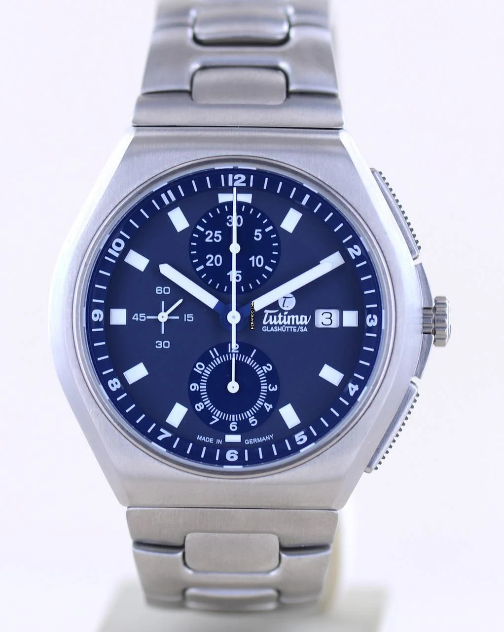 Die Tutima bietet neben der Zeit mit kleiner Sekunde noch eine Datumsanzeige und die schöne Chronographenfunktion.
