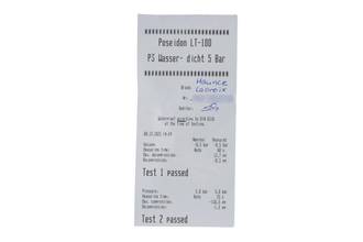 - Wasserdichtigkeit*: ja. Das Prüfprotokoll mit Prüfdruckangabe liegt bei.