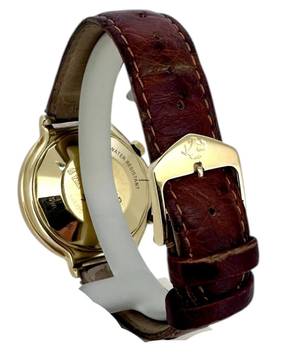 Der optische Zustand der Uhr ist gebraucht, beim Strauß Lederband handelt sich um ein neutrales. Unser Uhrmachermeister hat das Uhrwerk überprüft, es funktioniert einwandfrei.