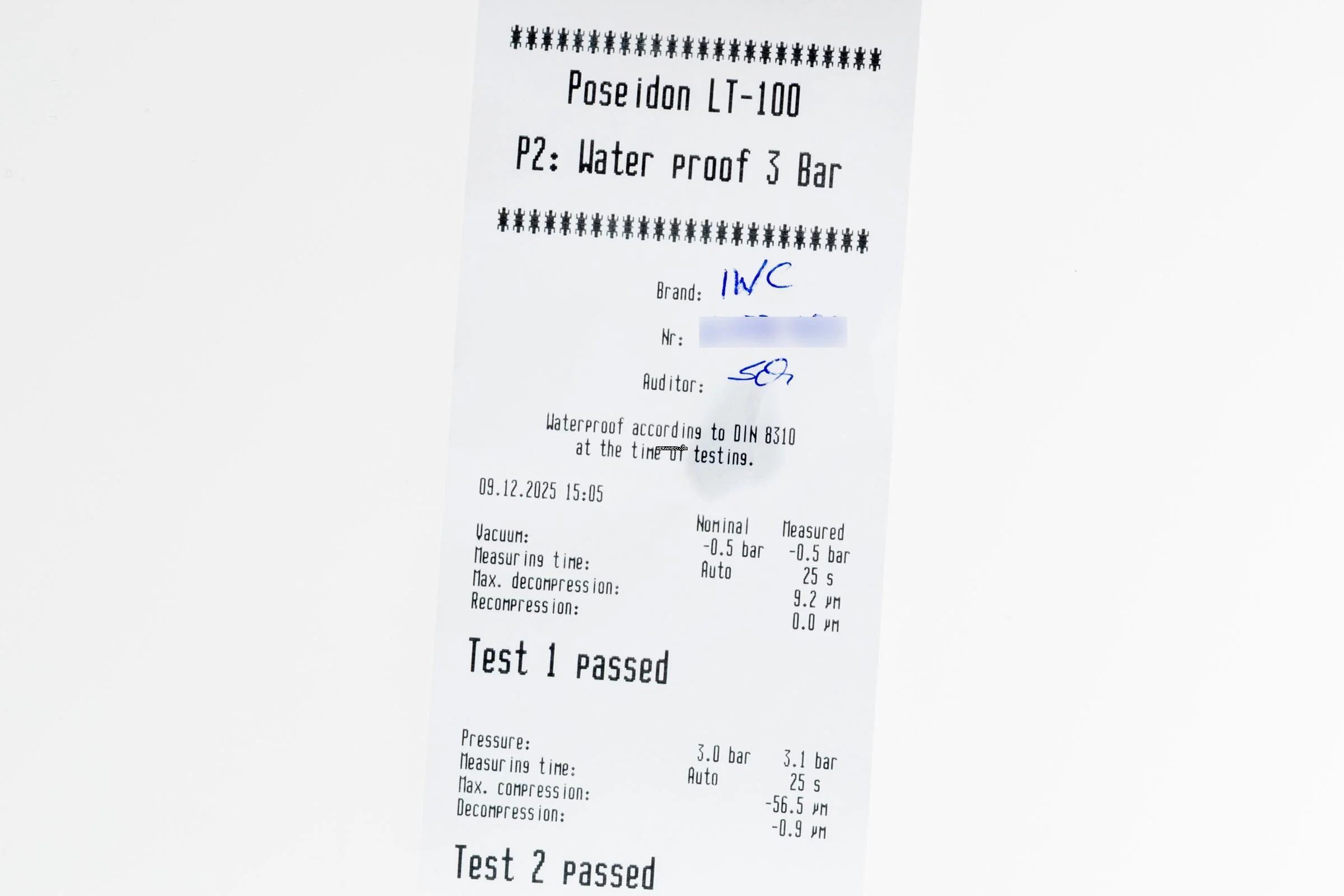 - Wasserdichtigkeit*: ja. Das Prüfprotokoll mit Prüfdruckangabe liegt bei.