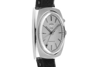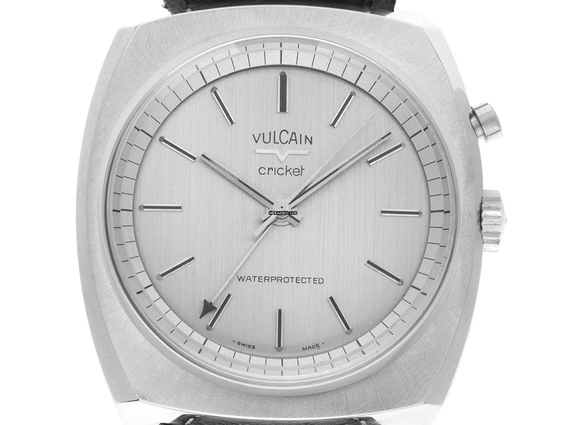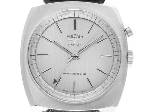 Vulcain Cricket Stahl Handaufzug Wecker Armband Leder Gehäuse Edelstahl satiniert, Gehäusemaße ohne Krone (L x B x H) 40 x 38 x 11,0mm. Armband Leder schwarz, Anstoßbreite 22mm, Stiftschließe Edelstahl. Zifferblatt silberfarben mit aufgesetzten Indexen und Edelstahl Zeigern. Uhrwerk Handaufzug, Weckerfunktion, Kaliber MSR S2 mit 17 Edelsteinen. Anzeige von Stunde, Minute und Sekunde über Zeiger aus der Mitte. Plexiglas. Krone zur Einstellung der Weckzeit mit Hersteller-Logo bei 2 Uhr, Krone zur Einstellung der Uhrzeit bei 3 Uhr. Boden Edelstahl verschraubt und graviert. Gewicht der Uhr inklusive Armband 66g. Referenznummer: S2326B, Gehäusenummer: 929058/93XXX, Baujahr: 1970, ID: KT157920000925H-3400, Artikelnummer: 10000081857. Mit Gangkontrolle und kompletter äußerlicher Aufarbeitung von September 2025. Mit Watchregister Auszug von September 2025, The Watch Register Zertifikat / ohne Eintrag (Internationale Datenbank für verlorene oder gestohlene Uhren). Sehr guter Zustand. Lieferzeit sofort. Inklusive certified pre owned Siegel / Uhrenpass mit einem Farbbild, der genauen Beschreibung sowie dem Wiederbeschaffungswert der Uhr über 3400,-€ und 1000 Tage Garantie ab Kaufdatum.