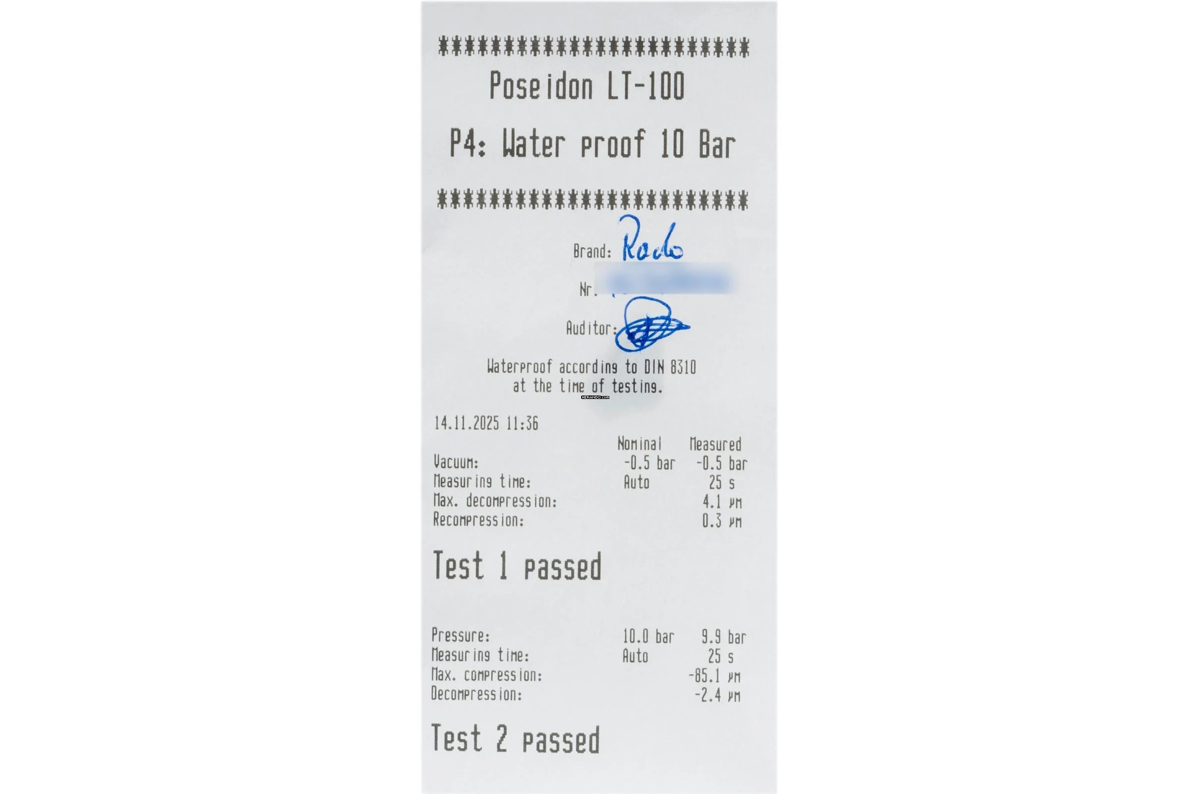 - Wasserdichtigkeit*: ja. Das Prüfprotokoll mit Prüfdruckangabe liegt bei.