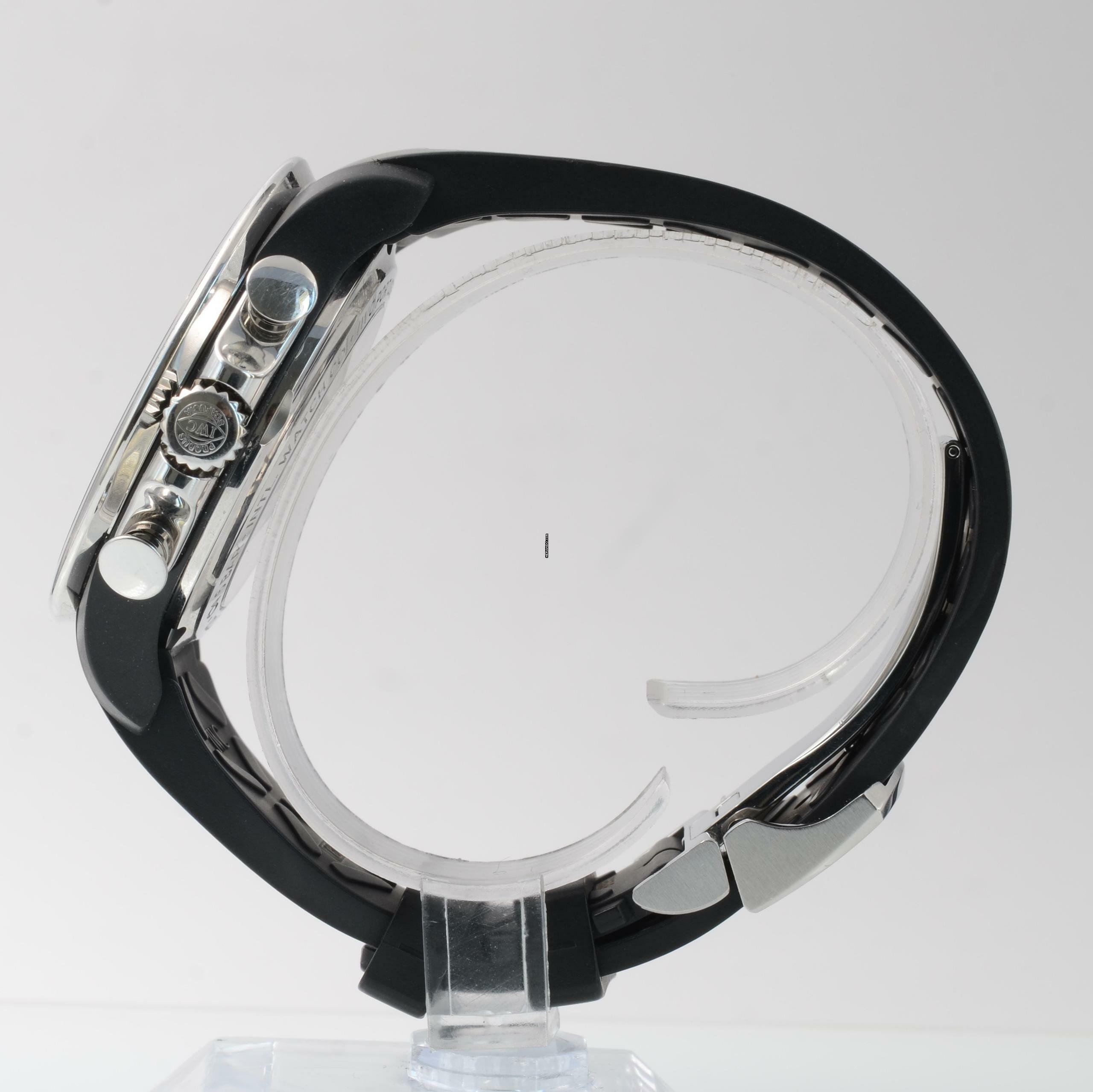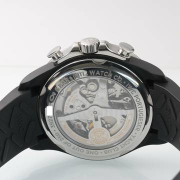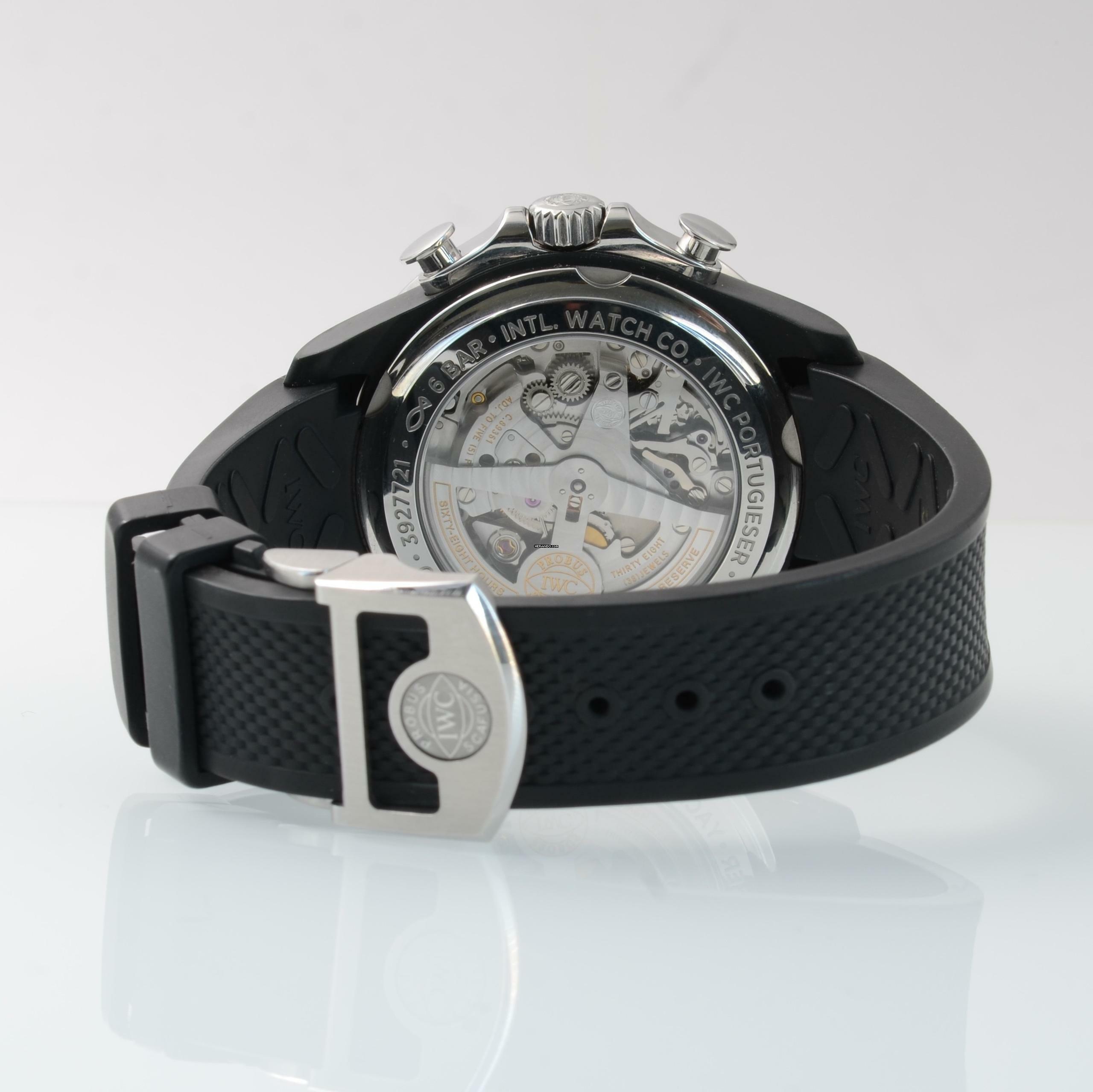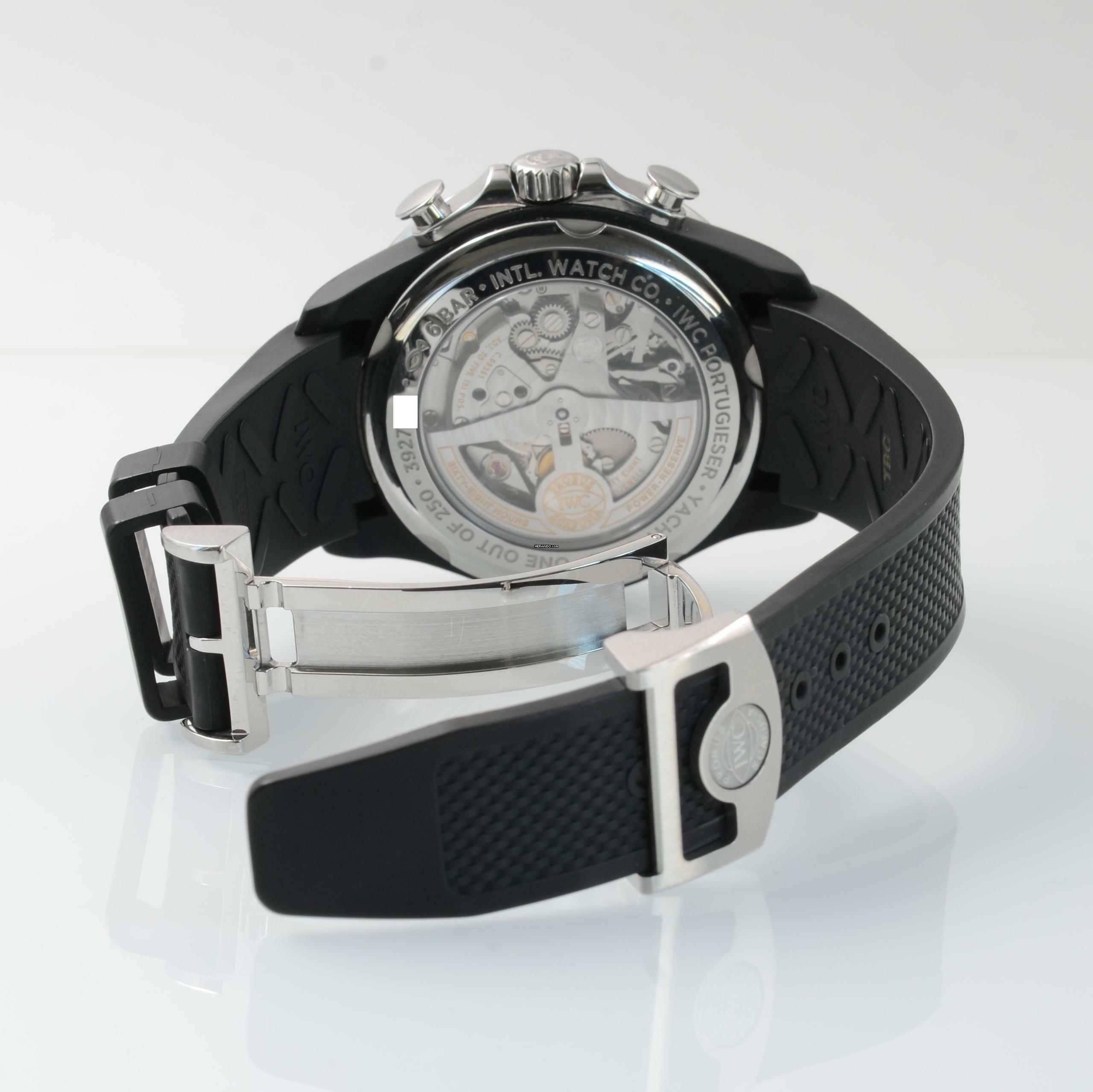 IWC Portuguese Yacht Club Chronograph limited edition steel and rubber, year of production 2015, anti-reflective sapphire glass, black color dial with date to two vertical counters indexes and hands to Luminova, mechanical movement automatic winding, black color rubber watchstrap with closure deployante original IWC.