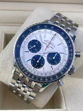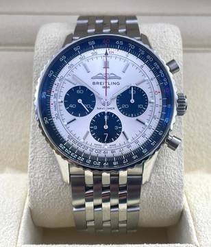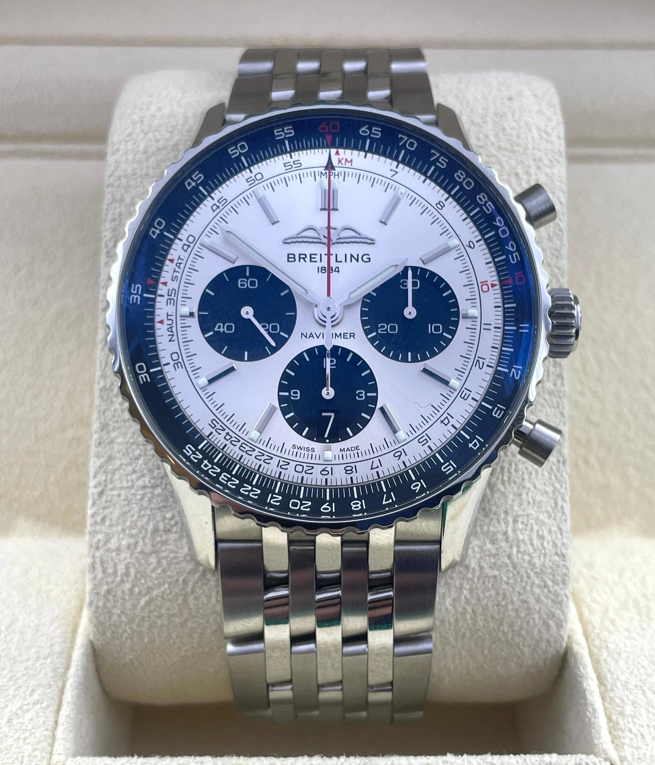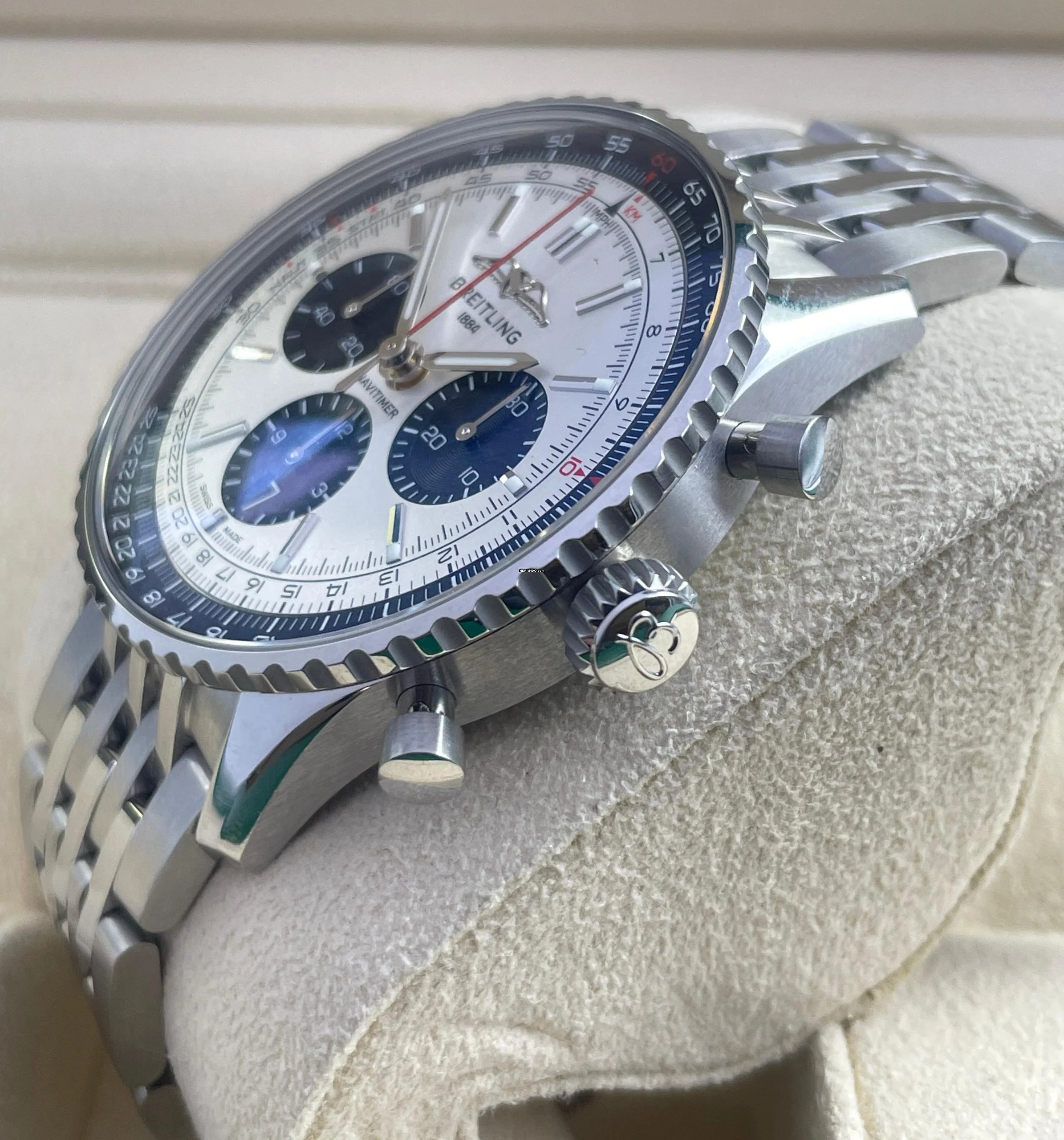 Breitling Navitimer 1 B01 Chronograph 43mm 2 Straps Steel and Leatherband with folding clasp FULL SET WITH BOX & PAPERS like NEW year: 2023 Silver Dial