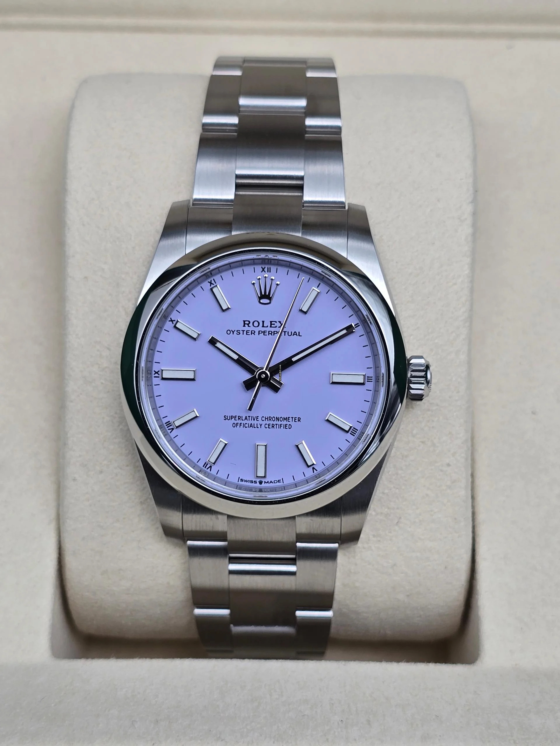 Rolex Oyster Perpetual 34 34mm 124200-0008 Lavender dial Unworn/New Condition Full Set 11-2025