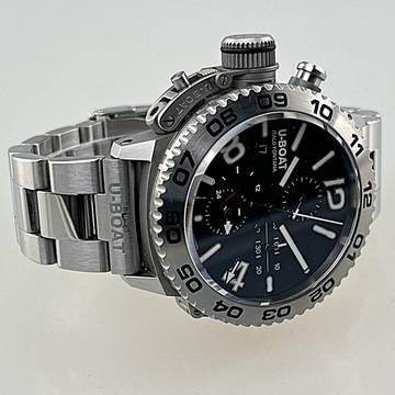 Direkt vom U-Boat Fachhändler: U-Boat Classico Doppiotempo 46 Chrono Stahl Automatik, Ref. 9016 mit original U-Boat Stahl-, Leder- u. Kautschuk-Armband, getragen, aus Erstbesitz, Erstkauf 04/2019