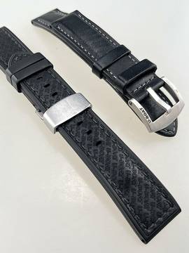 Das originale U-Boat Kautschukarmband ist mit einer Logo-Prägung versehen und wird mit einer Falschließe ausgeliefert.