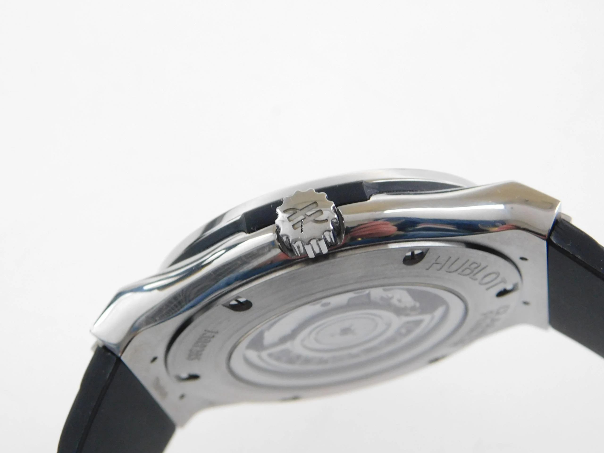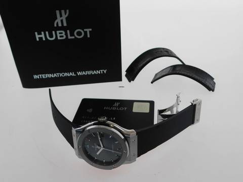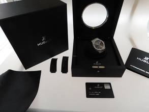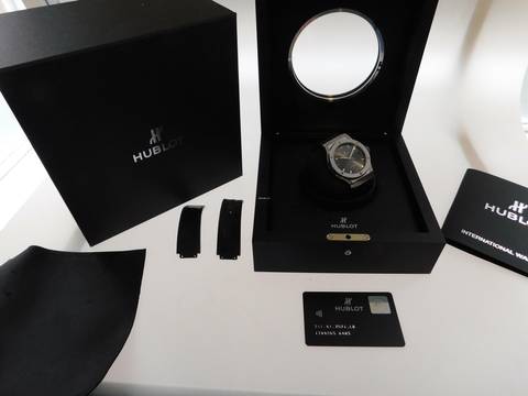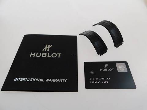 Das original Hublot Krokoband mit Tragespuren legen wir der Uhr aber bei.