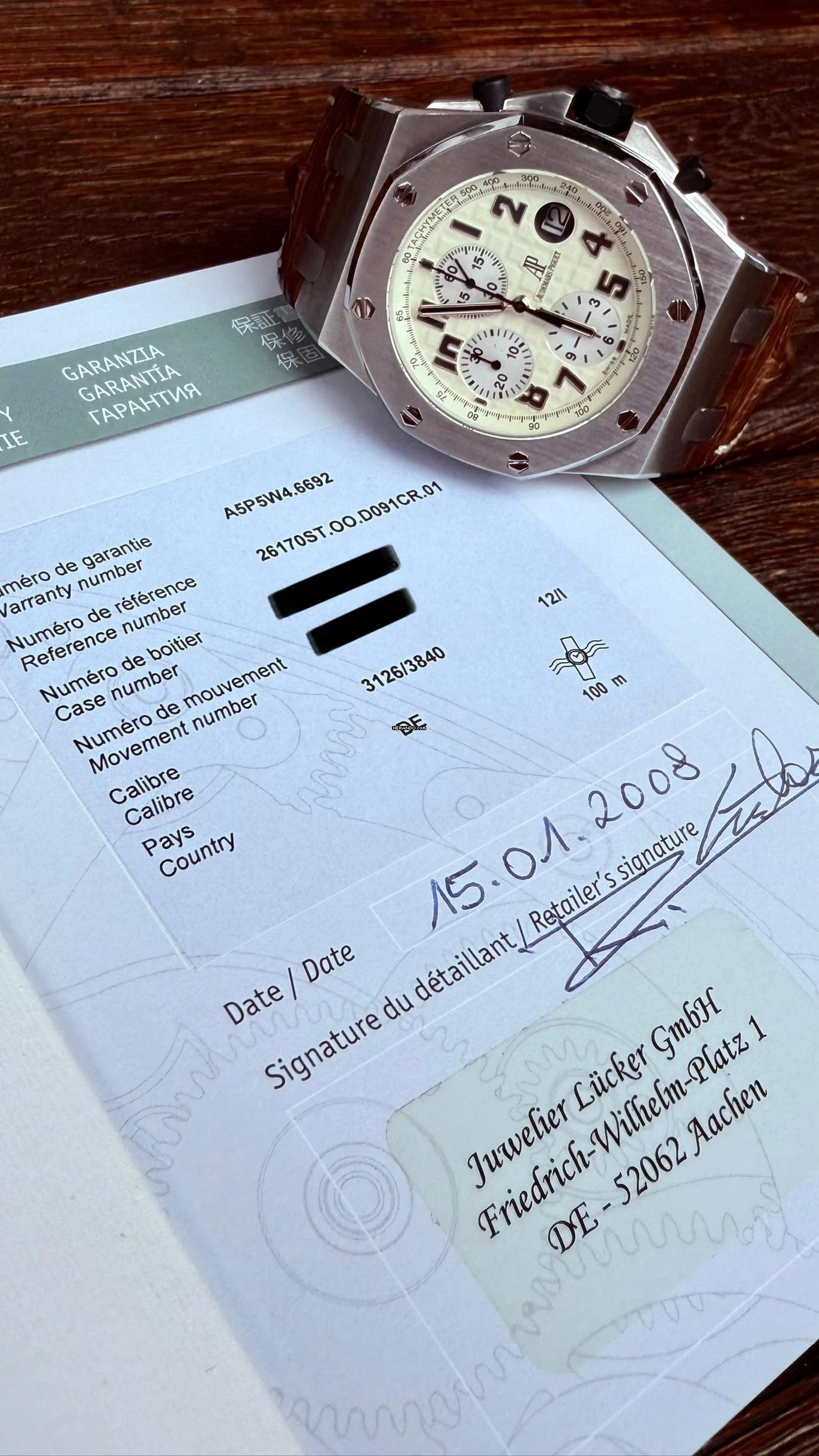 Kategorisch keine Gewährleistung auf Wasserdichtigkeit. (Alle Uhren sind jedoch nach DIN 8310 getestet)
