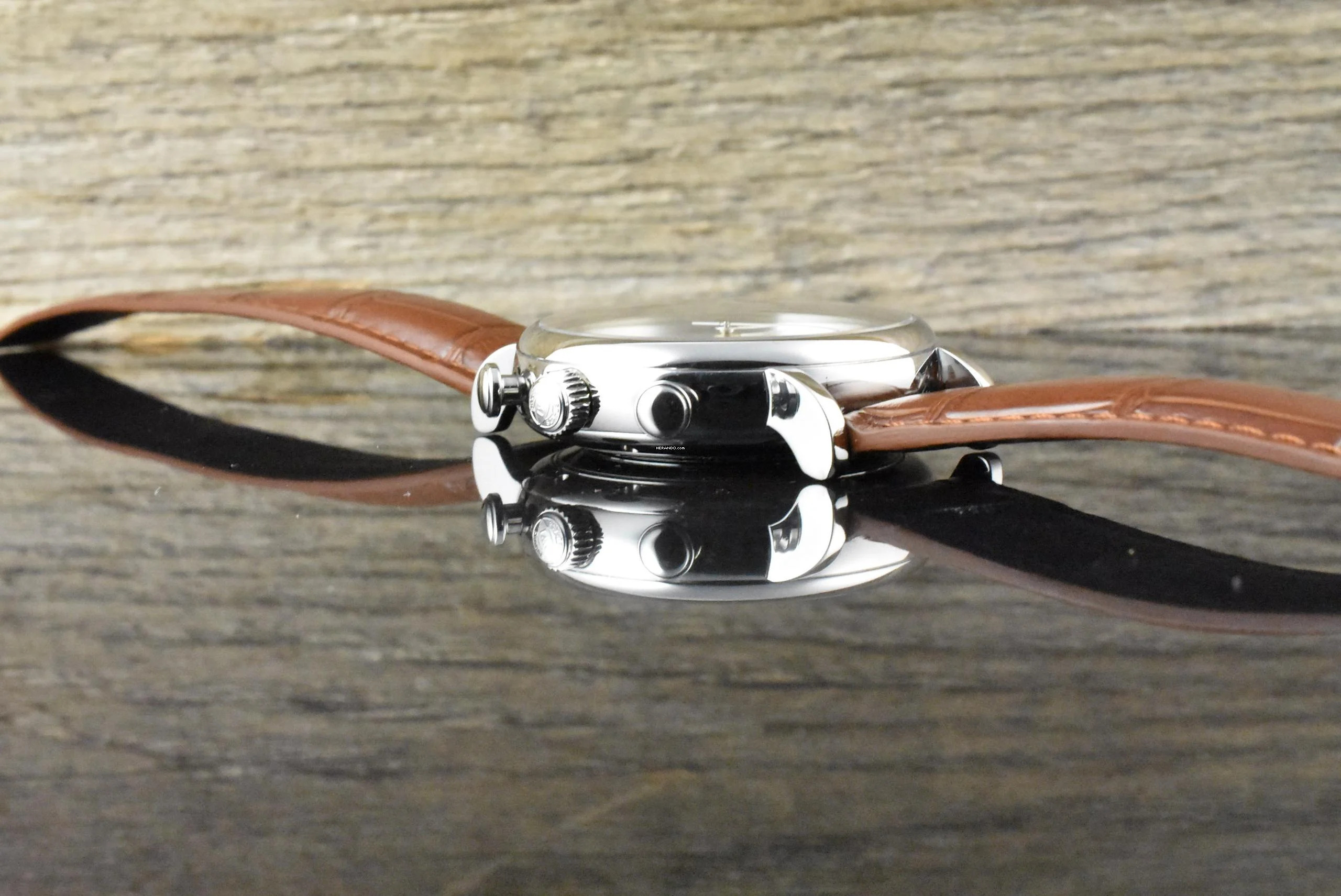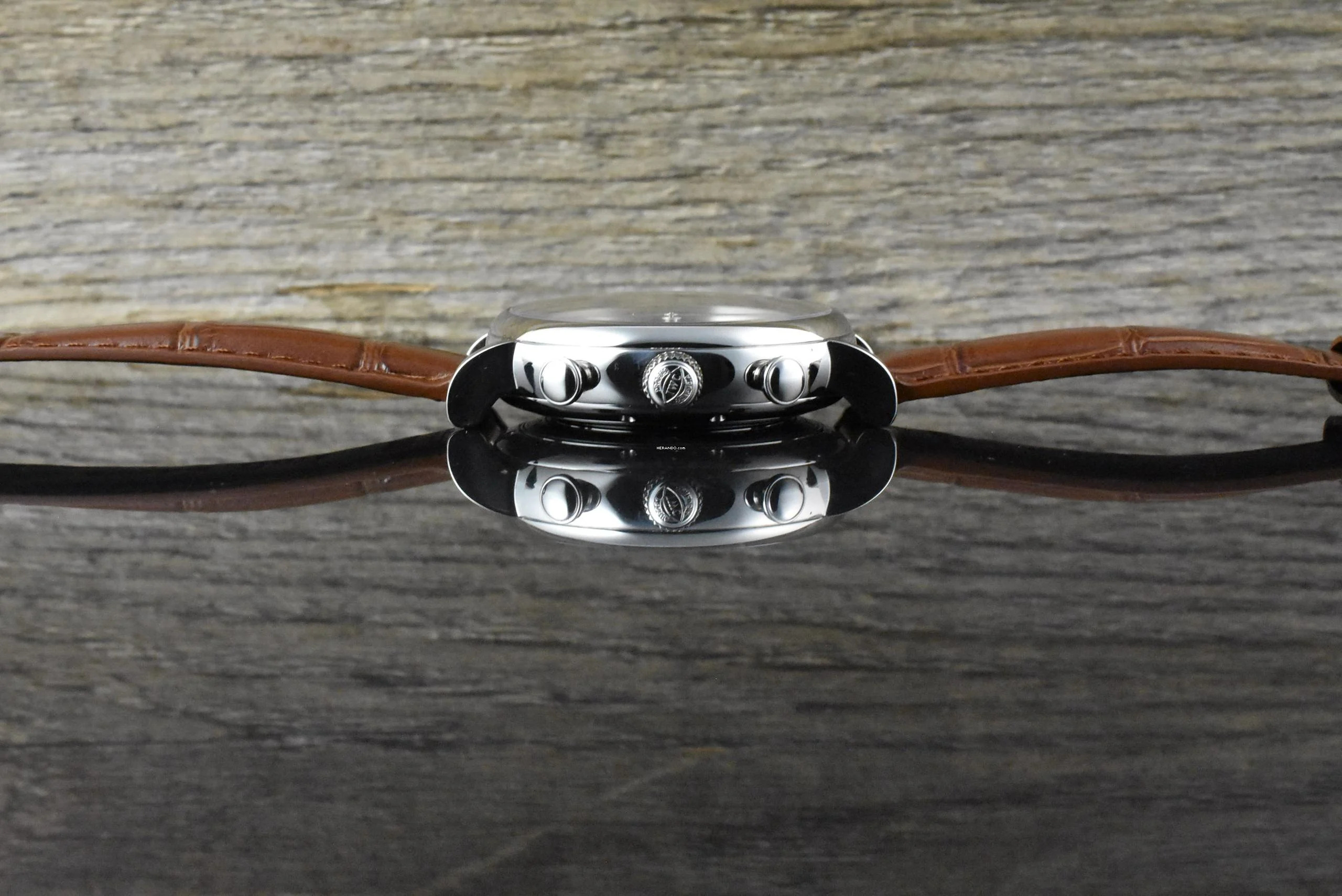 Werk: Automatik, Chronograph, Datum – Uhrwerk vom Uhrmachermeister geprüft und für tadellos befunden