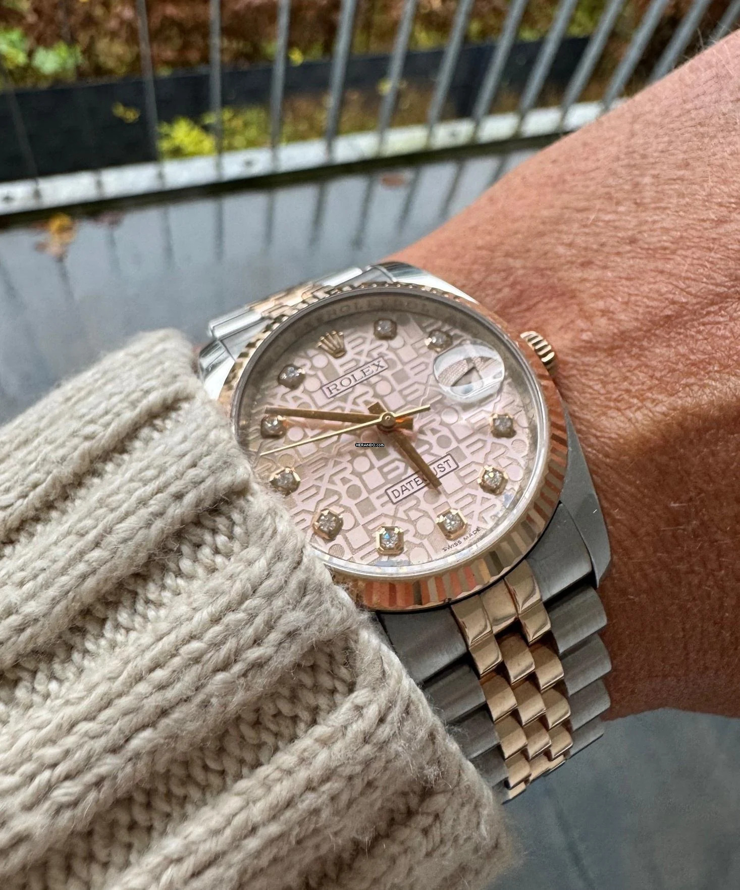 An alle Freunde des guten Geschmacks! Angeboten wird eine schöne Rolex DateJust 36 Stahl Roségold mit einem seltenen Pink Computer Diamond Ziffernblatt Referenz 116231 aus Deutschland mit Box & Papieren aus dem Jahr 2013!