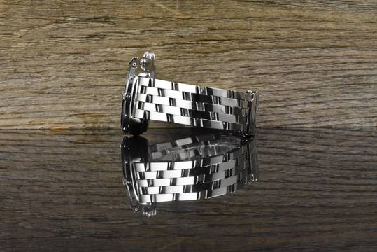 Armband: Stahl unpoliert mit Tragespuren, für einen maximalen Armumfang von ca. 19,5cm geeignet