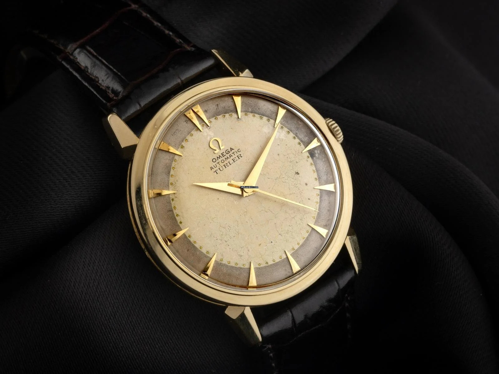 Omega Classic Türler Vintage Ref.2849 1953 original Box sehr gut Vintage Türler Vintage 18kt Gelbgold Krokoleder