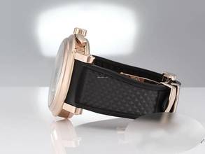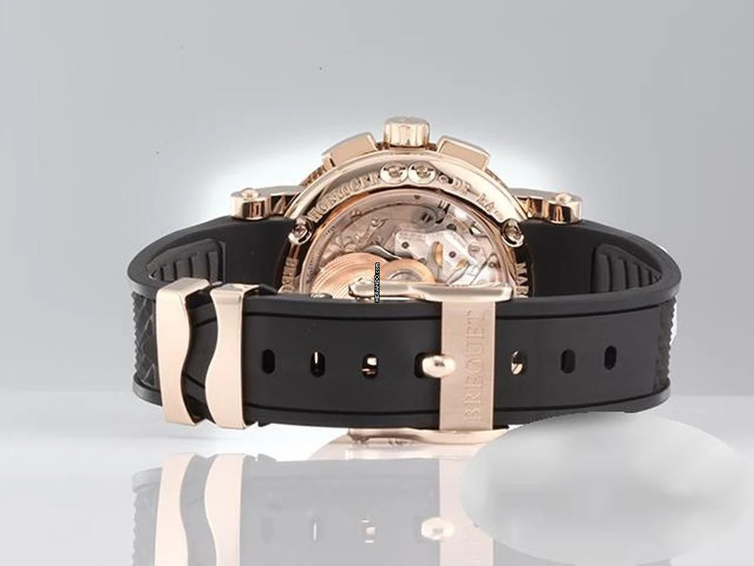 Sportliches schwarzes Breguet-Kautschuk-Armband mit einer exklusiven Breguet-Faltschließe ebenfalls aus Roségold 750