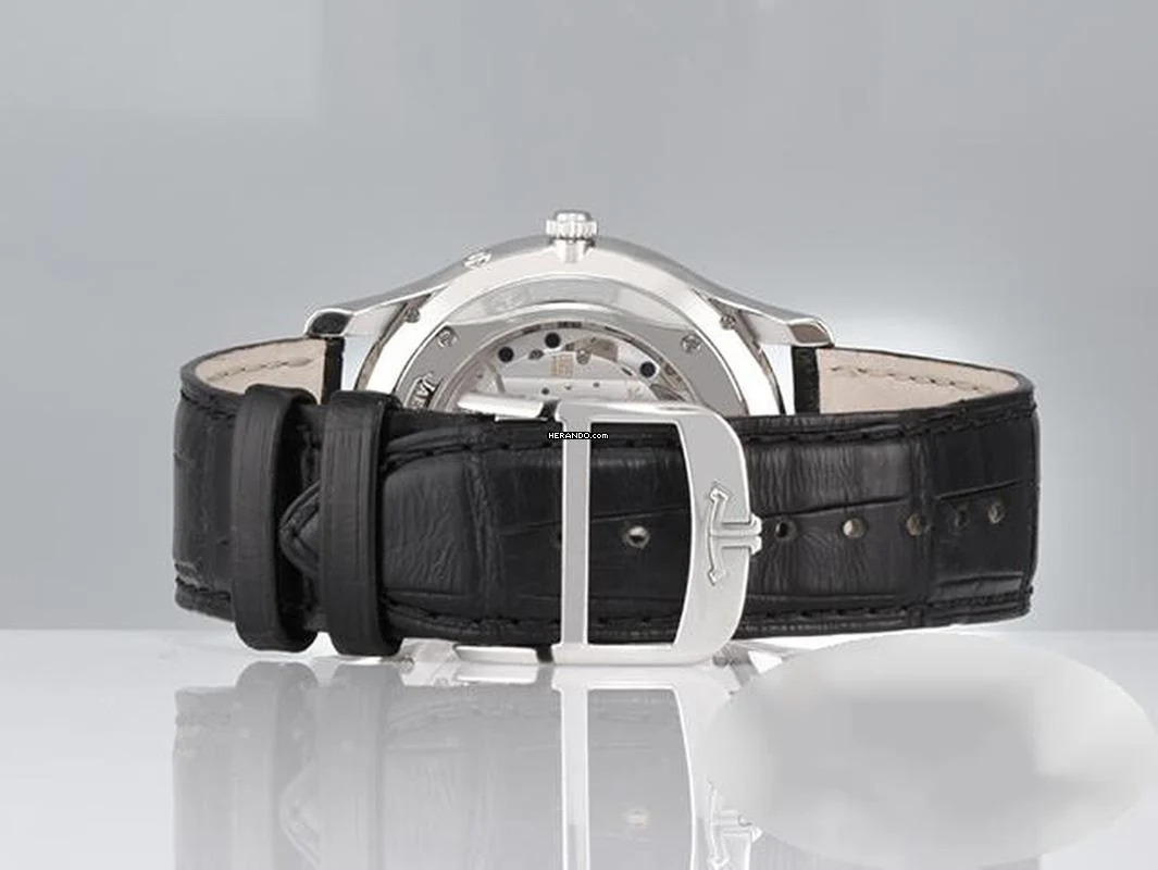 Diese einmalig-schöne und sehr exklusive Jaeger ist aus Edelstahl gefertigt Fantastisches schwarzes Zifferblatt mit silbernen StabindicesElegantes schwarzes Jaeger LeCoultre-Alligatorlederarmband mit einer exklusiven Jaeger LeCoultre-Doppelfaltschließe ebenfalls aus Edelstahl