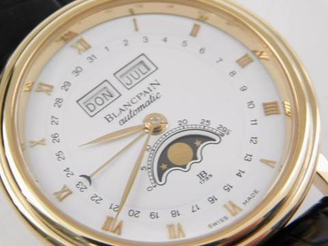 Blancpain Villeret Herrenuhr mit Tripple Kalender und Mondphase aus massiv 18 Karat Gelbgold. Automatik Version Referenz No 6595-1418