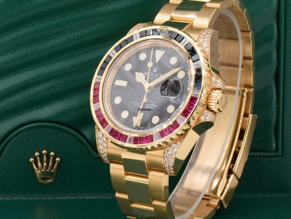 Orologio Rolex GMT-Master II, oro rosa, nuovo mai indossato. Benché inizialmente ideato per fini puramente professionali, grazie alla sua impareggiabile funzionalità e al suo aspetto robusto, il Rolex GMT-Master ha subito sedotto un’ampia gamma di viaggiatori, non solo per la possibilità di visualizzare l’ora in diversi fusi orari, ma anche per la solidità e la versatilità di questo modello, che lo rendono uno strumento ideale sia per i viaggi che per le occasioni di tutti i giorni.