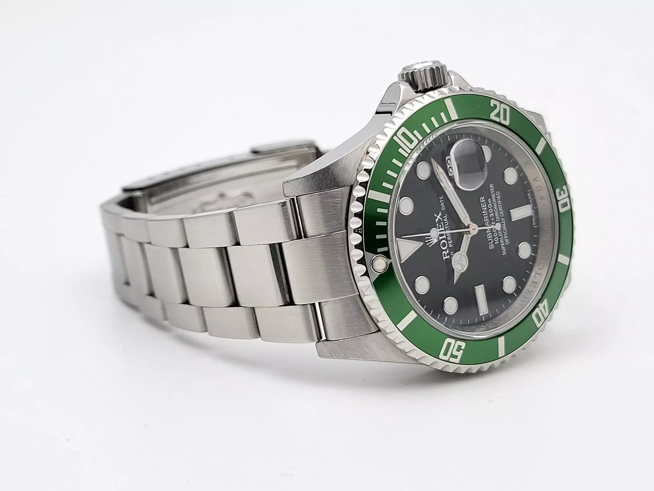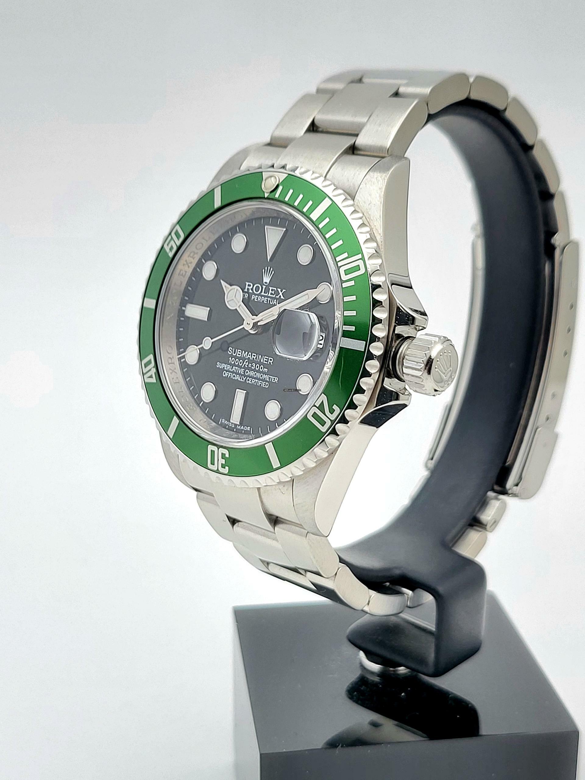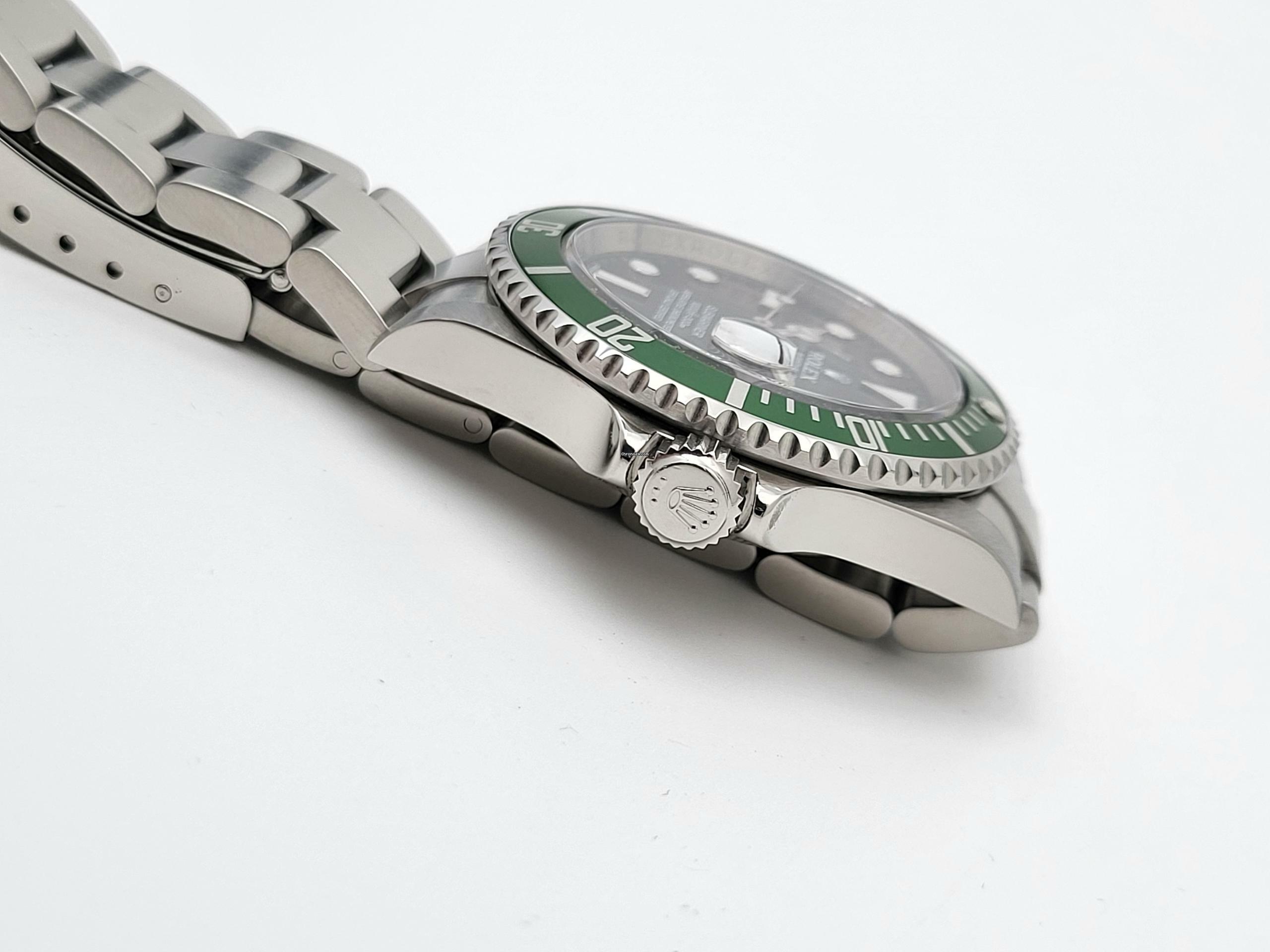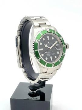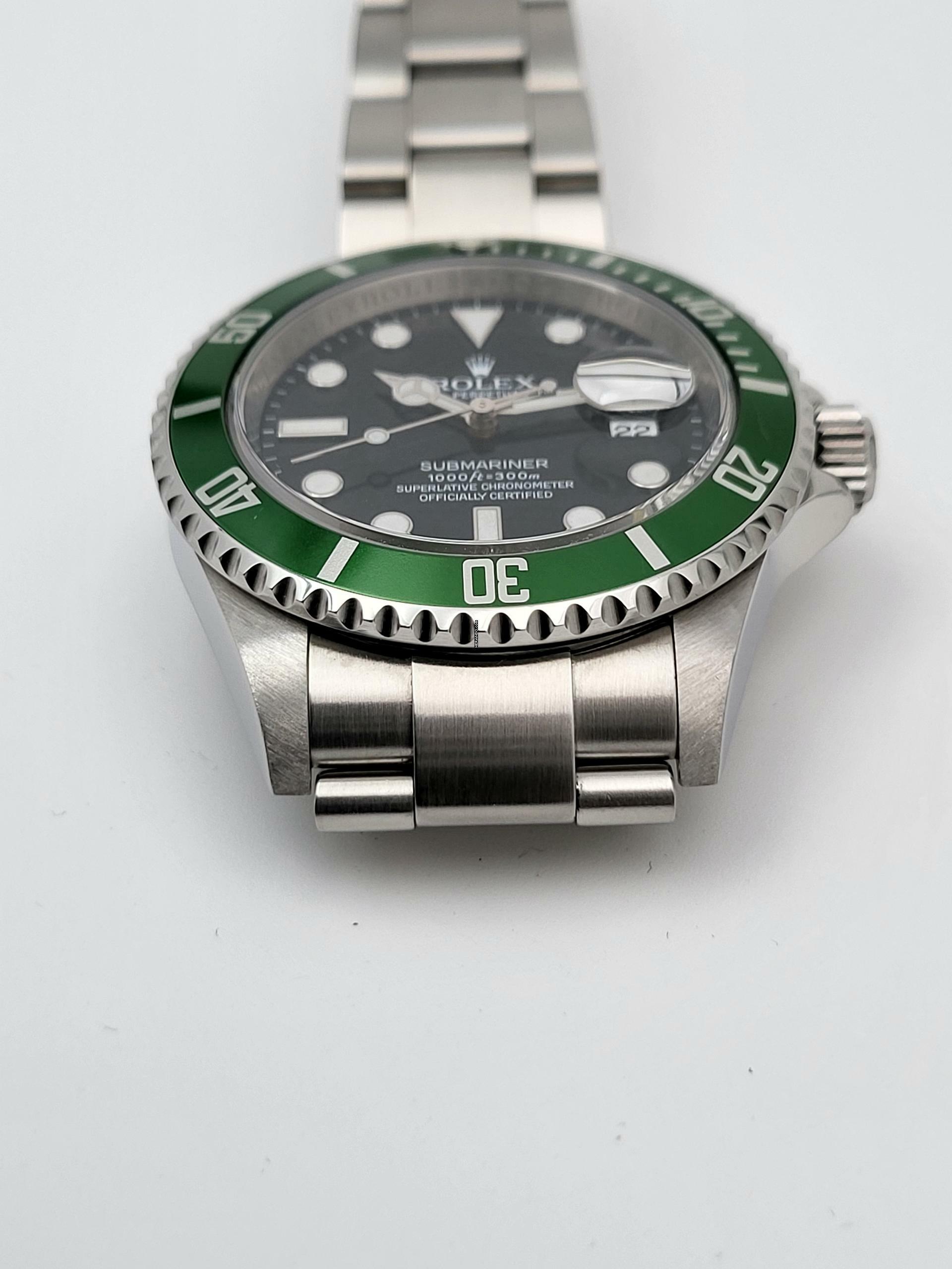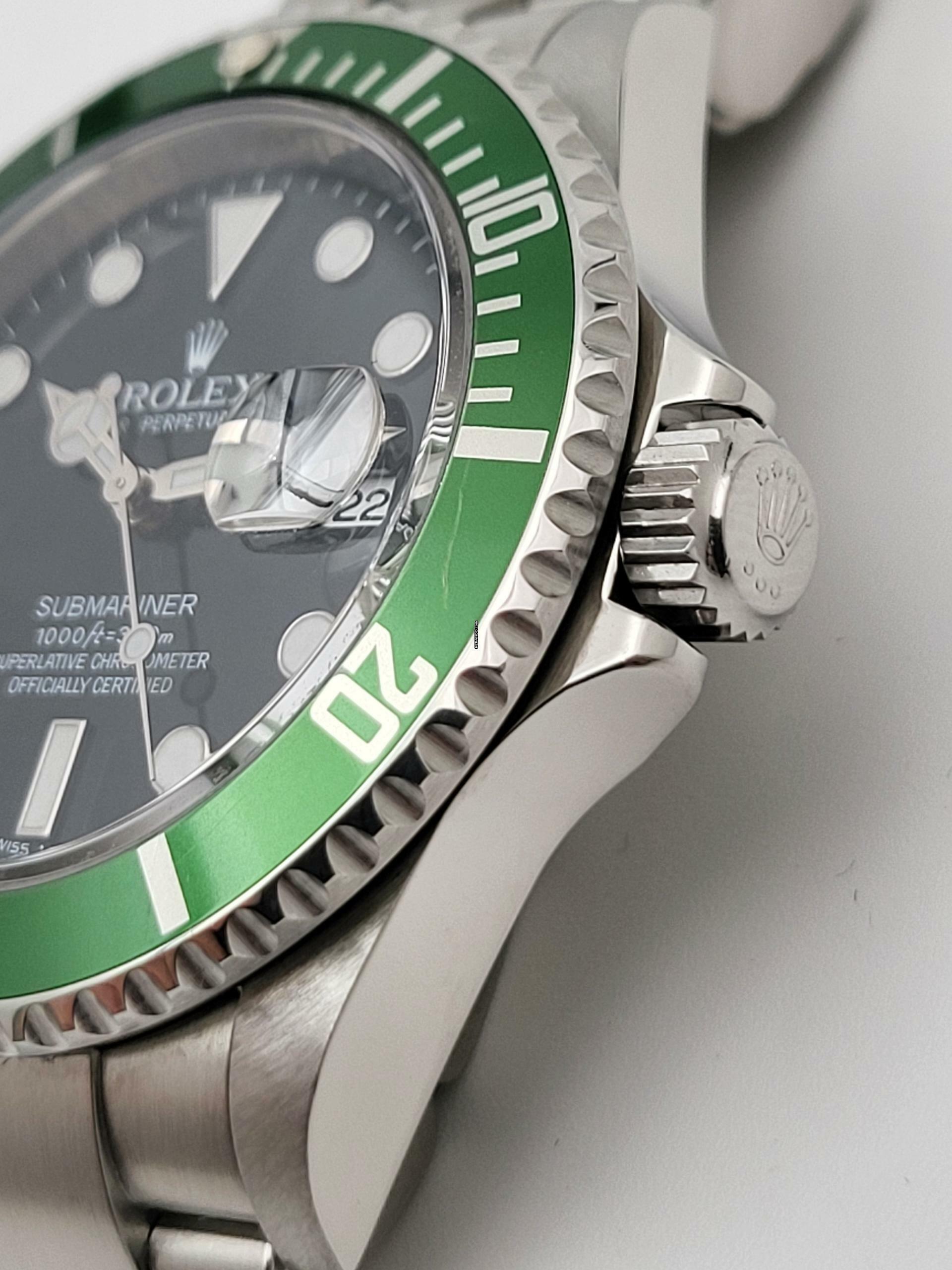 Zum Verkauf steht diese schöne und wenig getragene Rolex Submariner Date LV "Kermit" 40. mm in Stahl mit schwarzem Zifferblatt und grüner Stahl- Lünette. Die Uhr befindet sich in einem optisch und technisch sehr guten Zustand mit kleineren Gebrauchsspuren, dies sollte auf den Zoom -Bildern erkennbar sein, Auf der Lünette befindet sich ein Kratzer der aber die Farbschicht nicht durchdringt.