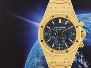Audemars Piguet Royal Oak Chronograph Yellow Gold Blue dial Full Set - Boutique Edition VERY RARE