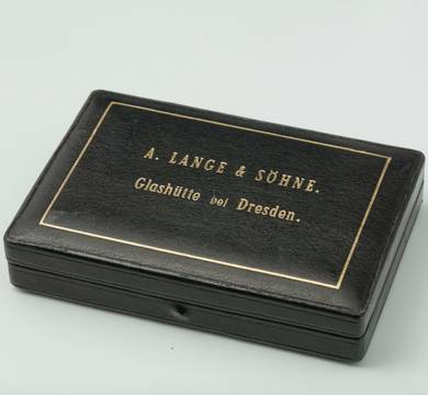 Large, mint condition so-called “”vault watch”” – heavy 18k gold pocket watch from the watch manufacturer A. Lange & Söhne Glashütte B/Dresden, manufactured in their best movement quality 1A and delivered with the rate register of the observatory in Leipzig or Hamburg.
