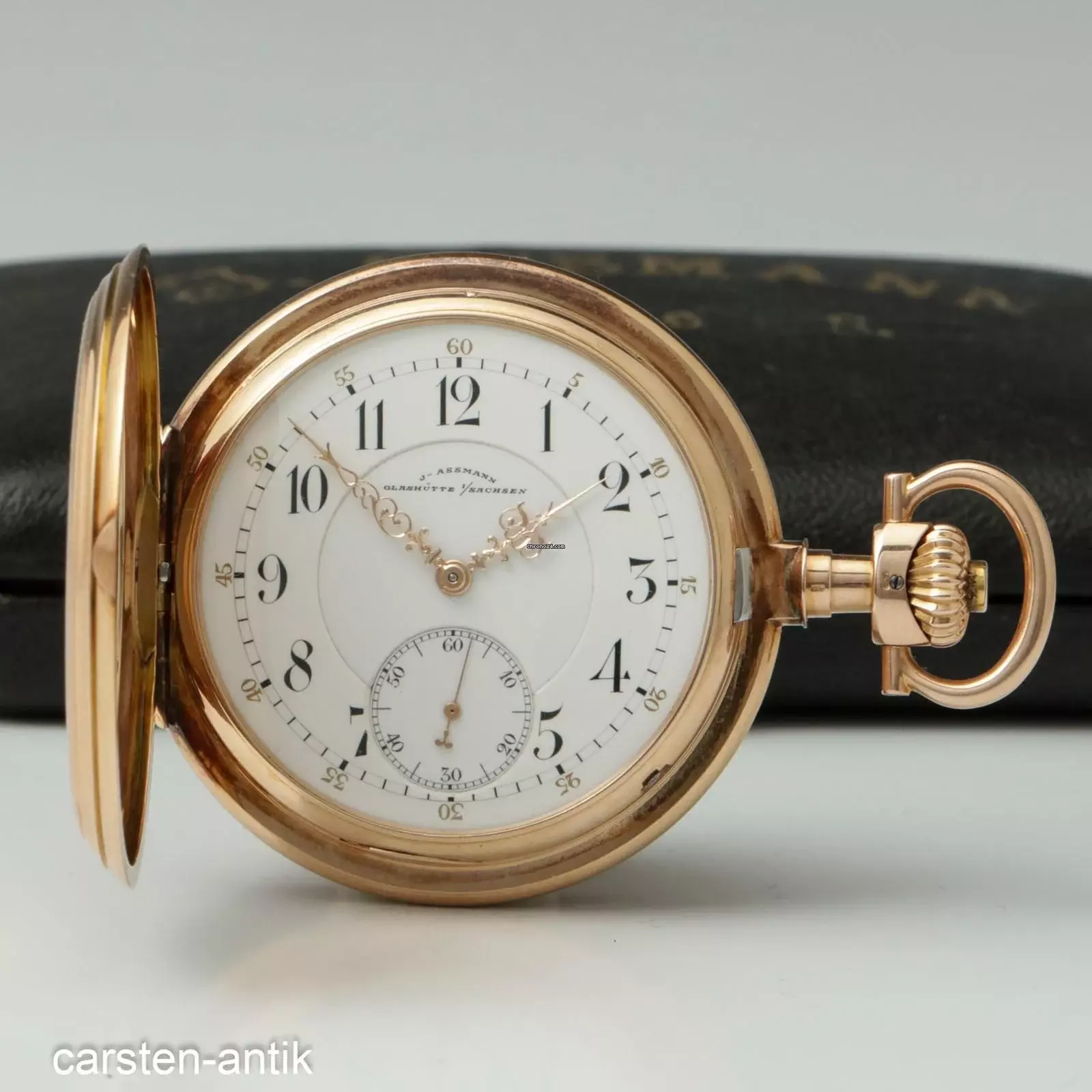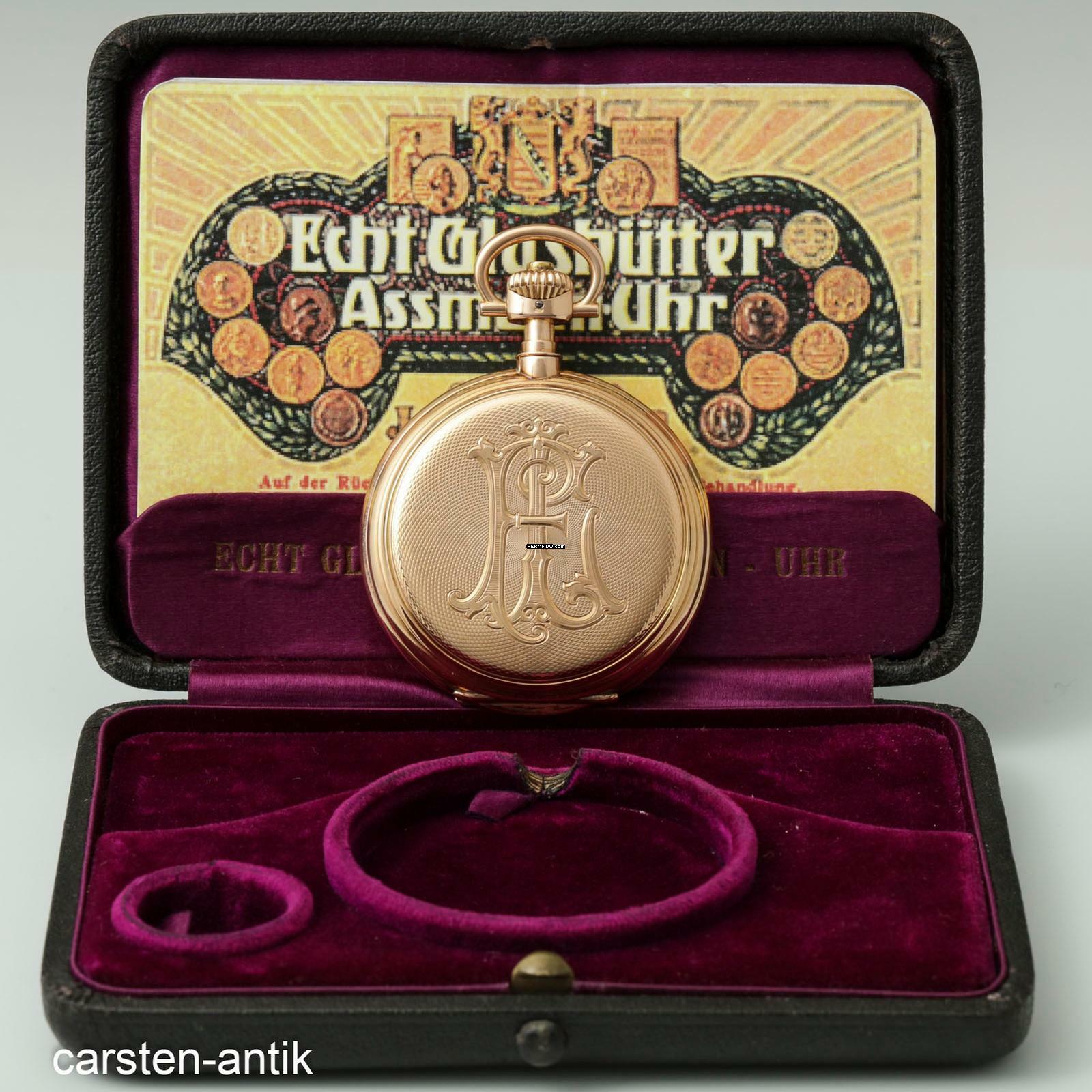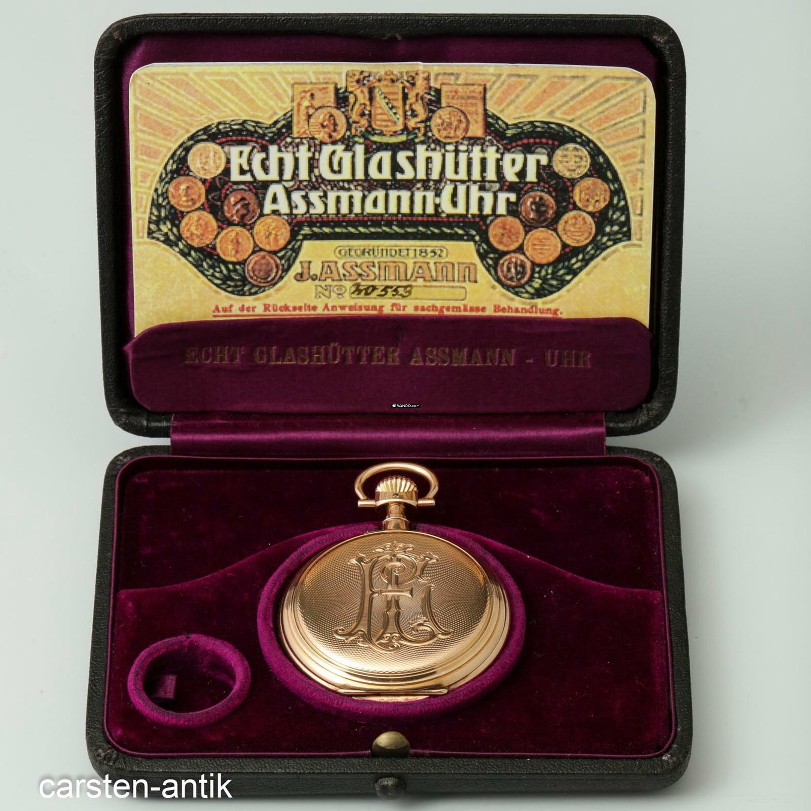 Julius Assmann Glashütte Qualität 1A Savonette Taschenuhr 14k Gold original Box 1910.