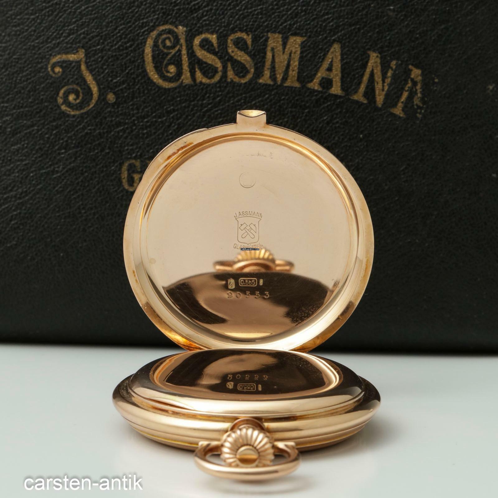 J. Assmann 54mm 117gr Qualität 1A Savonette Taschenuhr 14k Gold original Box 1910. Ungetragen