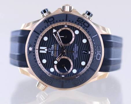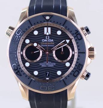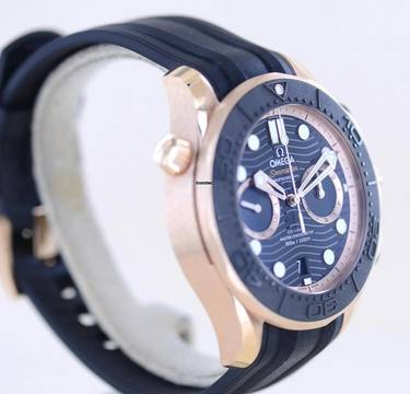 Sehr schöne und seltene Omega Seamaster Chronograph in der Sedna-Roségoldausführung. Zeitloses schwarzes Blatt mit roségoldenen Zeigern und Goldindizes. Gerahmt mit der goldenen Lünette mit schwarzer Kermaik-Einlage und erhabener 3D-Skala ein luxuriöser Klassiker.Die Verwendung von Sedna-Gold - welches von Omega exklsuiv verwendet wird - passt bei diesem Modell perfekt. Dieses außergewöhnliche Material wurde vom Weltall inspiriert. Der Name entstammt dem Planetoiden "Sedna". Es wird aus Gold, Palladium und Kupfer gefertigt und erzeugt ein wunderbares Roségold mit einer ganz eigenen Farbe. Der Goldanteil liegt hier bei mindestens 18K / 75%. Dank des Palladiums ist das Material deutlich härter als reines Gold und mit dem Kupferanteil etwas rötlicher.