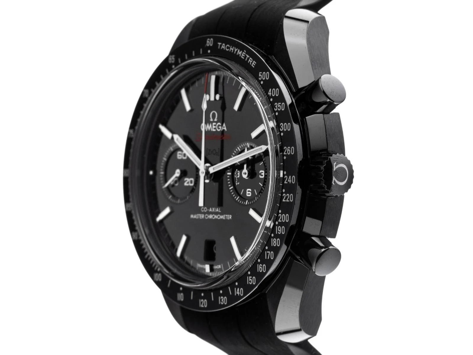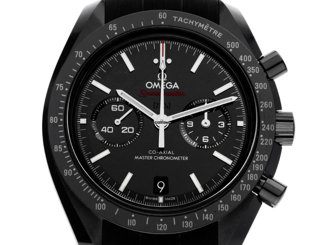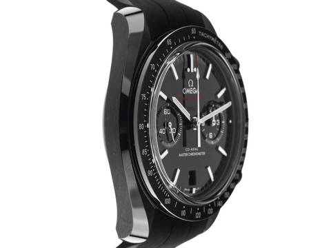 Omega Speedmaster Dark Side of the Moon Keramik Black Automatik Co‑Axial Chronometer Chronograph Armband Kautschuk Faltschließe Gehäuse Keramik schwarz poliert und satiniert, Gehäusedurchmesser ohne Krone 44,25mm, Gehäusehöhe 15,0mm. Lünette Keramik schwarz mit Tachymeterskala. Armband Kautschuk schwarz, Anstoßbreite 21mm, Sicherheitsfaltschließe Titan / Keramik schwarz mit Hersteller-Logo. Zifferblatt Keramik schwarz mit aufgesetzten weißgoldenen Leuchtindexen und weißgoldenen Leuchtzeiger. Uhrwerk Automatik, Chronograph, Chronometer mit Zeugnis, Omega Manufakturkaliber 9900 mit 54 Edelsteinen, GAngreserve ca. 60 Stunden. Anzeige von Stunde und Minute über Zeiger aus der Mitte, kleine Sekunde mit Sekundenstopp zur sekundengenauen Einstellung der Uhrzeit bei 9 Uhr, Datumsanzeige mit Schnellverstellung bei 6 Uhr. Saphirglas gewölbt und kratzfest. Krone mit Flankenschutz und Hersteller-Logo. Boden Keramik schwarz verschraubt und graviert mit Saphirglas Sichtfenster. Gewicht der Uhr inklusive Armband108g. Referenznummer: 310.92.44.51.01.004, ID: ST1160215340126H-15200, Artikelnummer: 10000084421. Original Omega Box mit Umkarton und Garantie Papiere von Januar 2026 sowie Beschreibung, Full Set. Ungetragen. Lieferzeit sofort. Inklusive Uhrenpass mit einem Farbbild, der genauen Beschreibung sowie dem Wiederbeschaffungswert der Uhr über 15200,-€ und 1000 Tage Garantie ab Kaufdatum.
