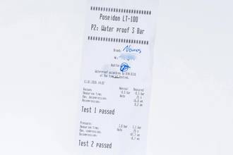 - Wasserdichtigkeit*: ja. Das Prüfprotokoll mit Prüfdruckangabe liegt bei.