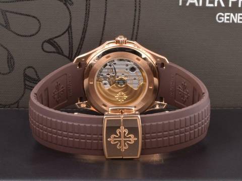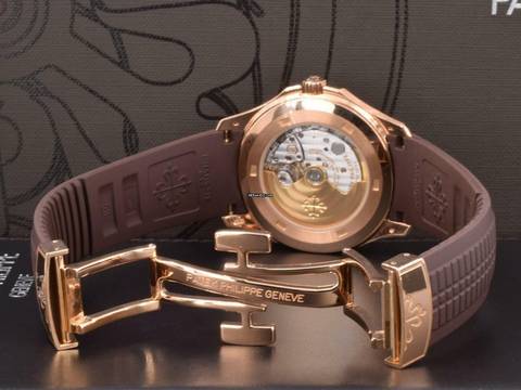 Patek Philippe Aquanaut Rose Gold Brown Dial Like New Il modello Aquanaut, lanciato nel 1997, si impone come un modello di eleganza sportiva, combinando alla perfezione eccellenza tecnica, prestazioni di alto livello e originalità di design.
