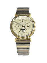 Die Chronoswiss Kelek 5287 ist eine seltene Neo-Vintage-Armbanduhr, die in Zusammenarbeit mit dem Spezialisten Kelek entstand. Sie ist bekannt für ihr Bi-Color-Gehäuse (Stahl/Goldauflage), einen Vollkalender mit Mondphase und ein Automatikwerk basierend auf dem ETA 2892-2. Die Uhr stammt aus der Zeit, in der Chronoswiss mechanische Komplikationen forcierte.