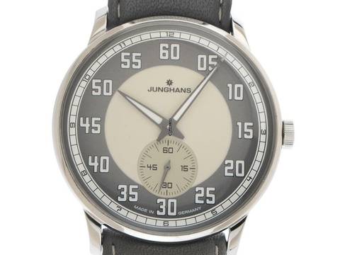Junghans Meister Driver Stahl Handaufzug Armband Leder Gehäuse Edelstahl poliert, Gehäusedurchmesser ohne Krone 37,7mm, Gehäusehöhe 7,5mm. Armband Leder grau mit heller Ziernaht, Anstoßbreite 20mm, Stiftschließe Edelstahl mit Hersteller-Logo. Zifferblatt grau / cremeweiß mit weißen arabischen Ziffern und Edelstahl Zeigern. Uhrwerk Handaufzug, Kaliber Junghans J815.1 mit 17 Edelsteinen. Anzeige von Stunde und Minute über Zeiger aus der Mitte, kleine Sekunde Sekunde mit Sekundenstopp zur sekundengenauen Einstellung der Uhrzeit bei 6 Uhr. Plexiglas gewölbt. Krone geriffelt mit Hersteller-Logo. Boden 5-fach verschraubt und graviert mit Saphirglas Sichtfenster. Gewicht der Uhr inklusive Armband 33g. Referenznummer: 027/3608.00, Gehäusenummer: 00XXX, ID: KRE14040126RE-1170, Artikelnummer: 10000084566. Original Junghans Box und Garantie Papiere von Oktober 2019 sowie Beschreibung und Watchregister Auszug von Januar 2026, The Watch Register Zertifikat / ohne Eintrag (Internationale Datenbank für verlorene oder gestohlene Uhren), Full Set. Superschnäppchen, fast nicht getragen. Wie Neu. Lieferzeit sofort.