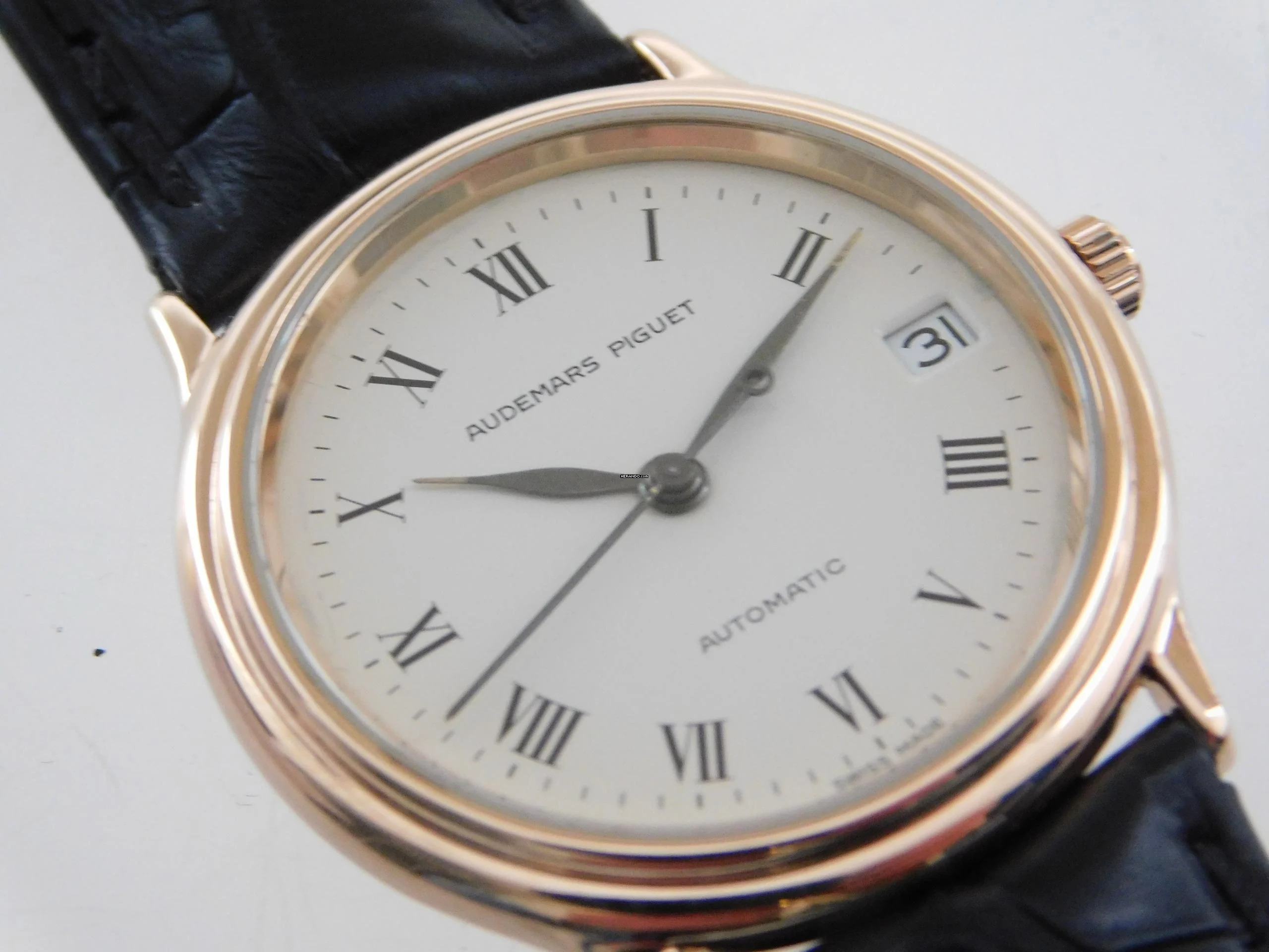 Audemars Piguet feine Herrenuhr aus massiv 18 Karat Rotgold (nicht vergoldet) Durchmesser 33 mm ohne Krone und 35 mm mit Krone gemessen 7 mm flach